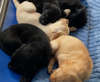 Our puppies include black, chocolate, and yellow. Colors will vary depending on the parent dogs.