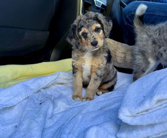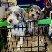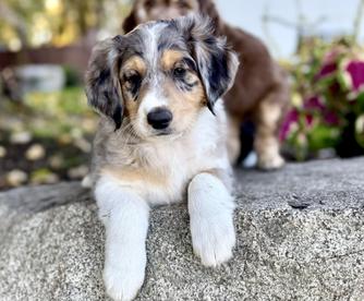 Our Miniature Australian Shepherd puppies are miniature size. Aussiedoodle puppies include mini and standard sizes. Sizes will vary depending on the parent dogs.