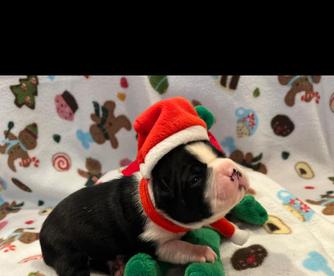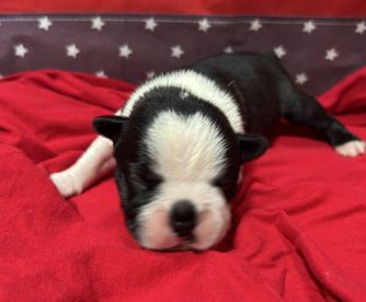 From our first contact to picking up our puppy, we had a terrific experience working with Carol. She was very quick to respond to all of our questions and sent us regular updates and pictures. She provided us with all the necessary paperwork from the vet and from AKC to get her papers. I highly recommend her to anyone looking for a Boston Terrier puppy!