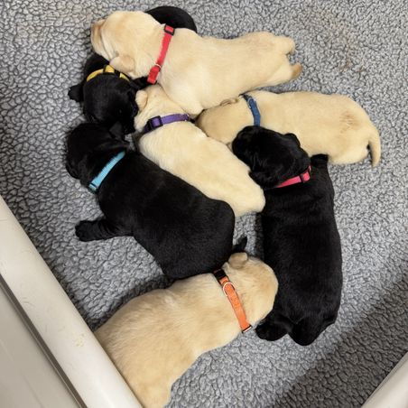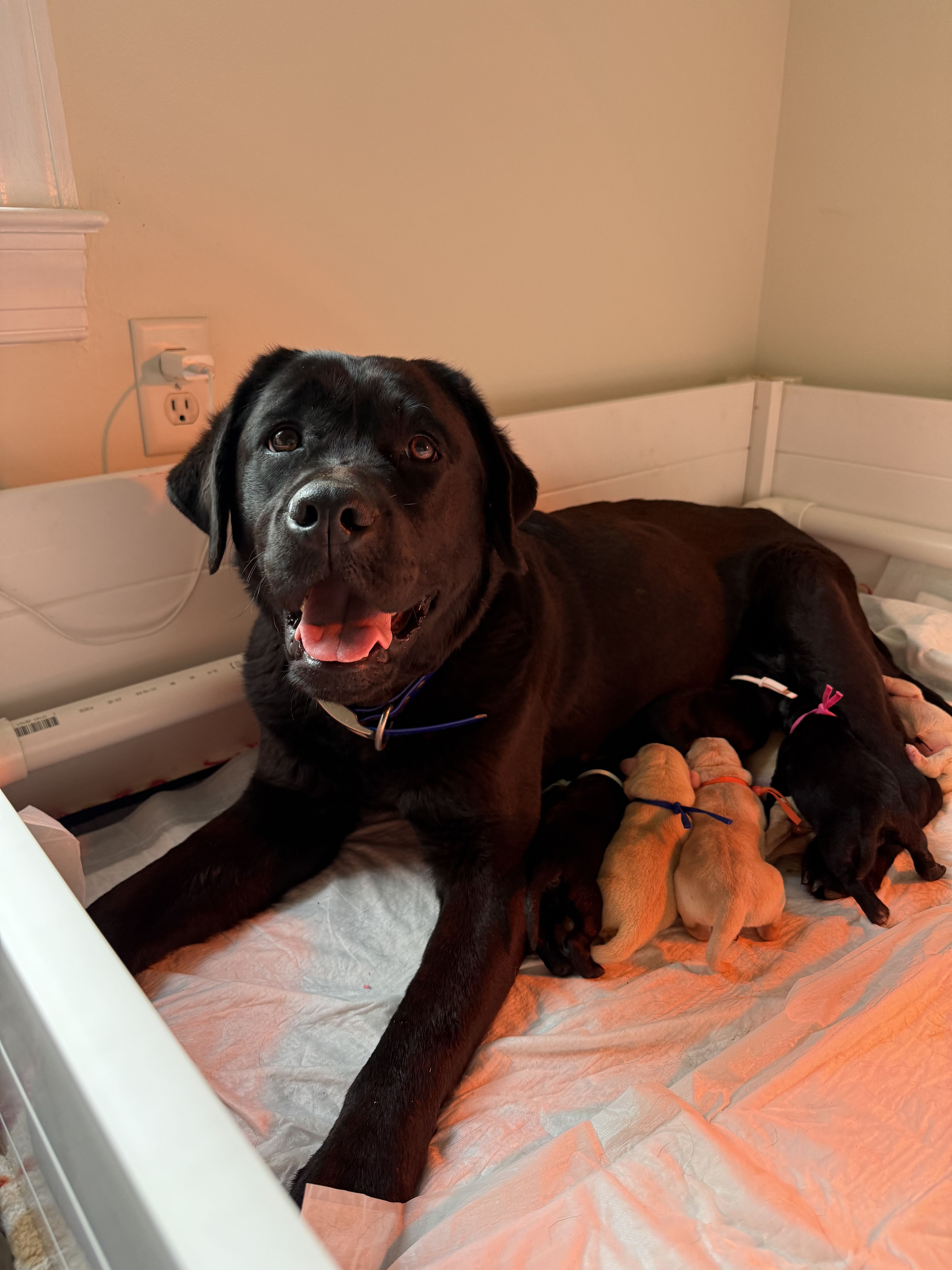 We have 1 yellow female, 1 black female, and 2 yellow males left from this litter!