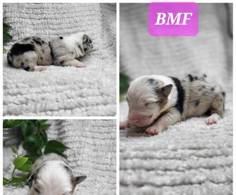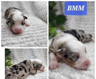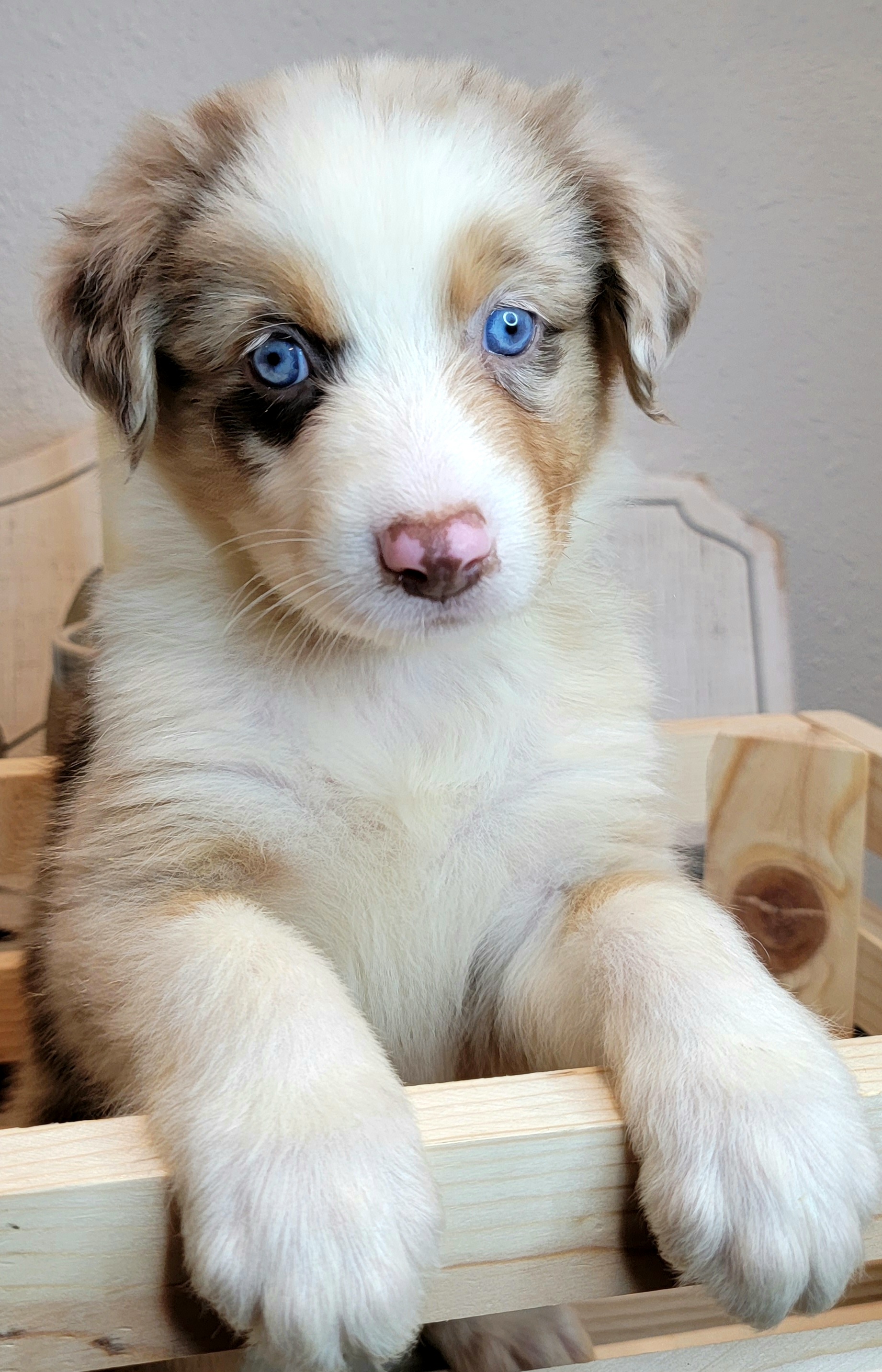 Our puppies include red merle, blue merle, black tri-color, and red tri-color. Colors will vary depending on the parent dogs.