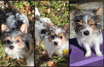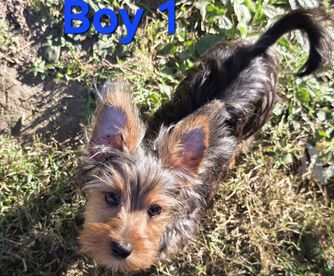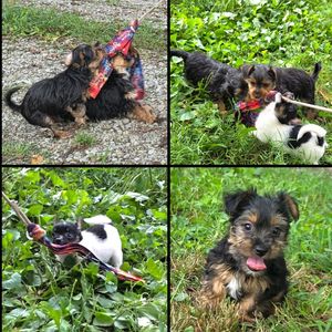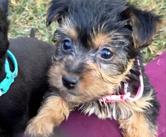 Our Belgian Malinois puppies include black and fawn. Companion Cross puppies are black and white. Yorkshire Terrier puppies include parti and black and tan. Russell Terrier puppies are tri-color. Colors will vary depending on the parent dogs.