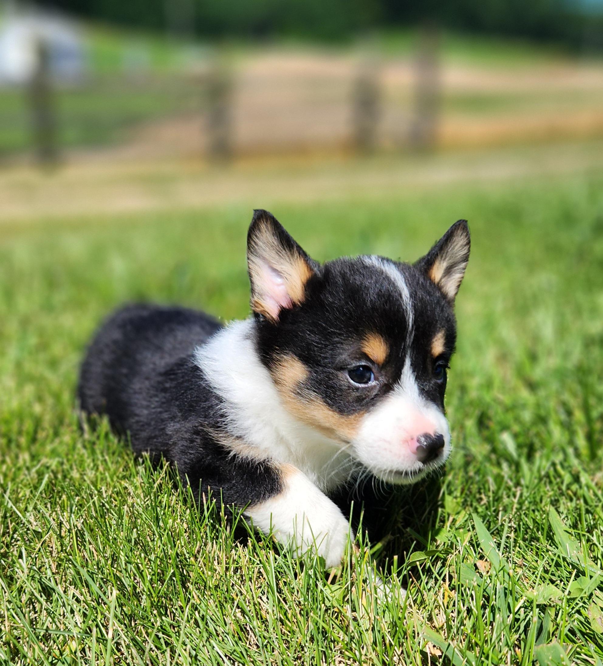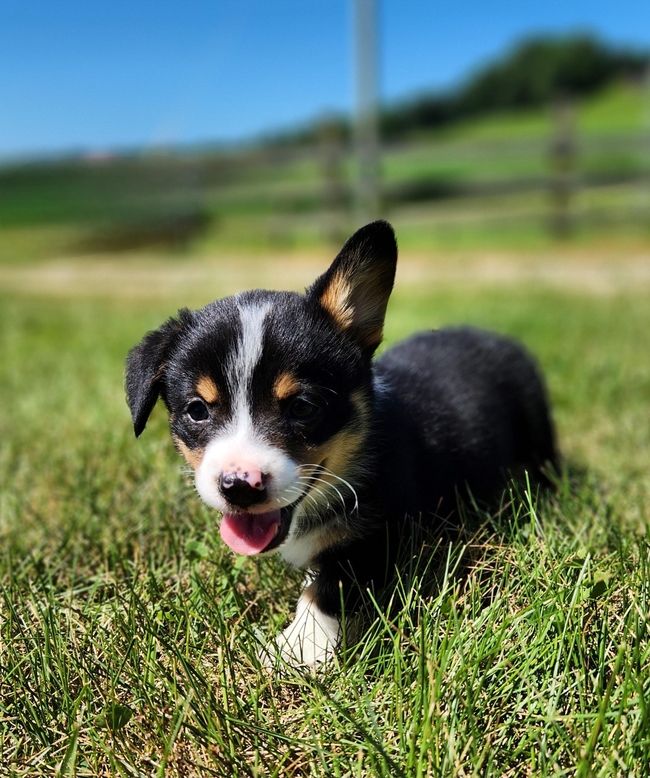 Nugget is Corgi perfection in every way., from structure to personality she is everything a Corgi should be. She is square, stout and foxy. She LOVES everyone she meets. Just looking at her makes your heart smile.