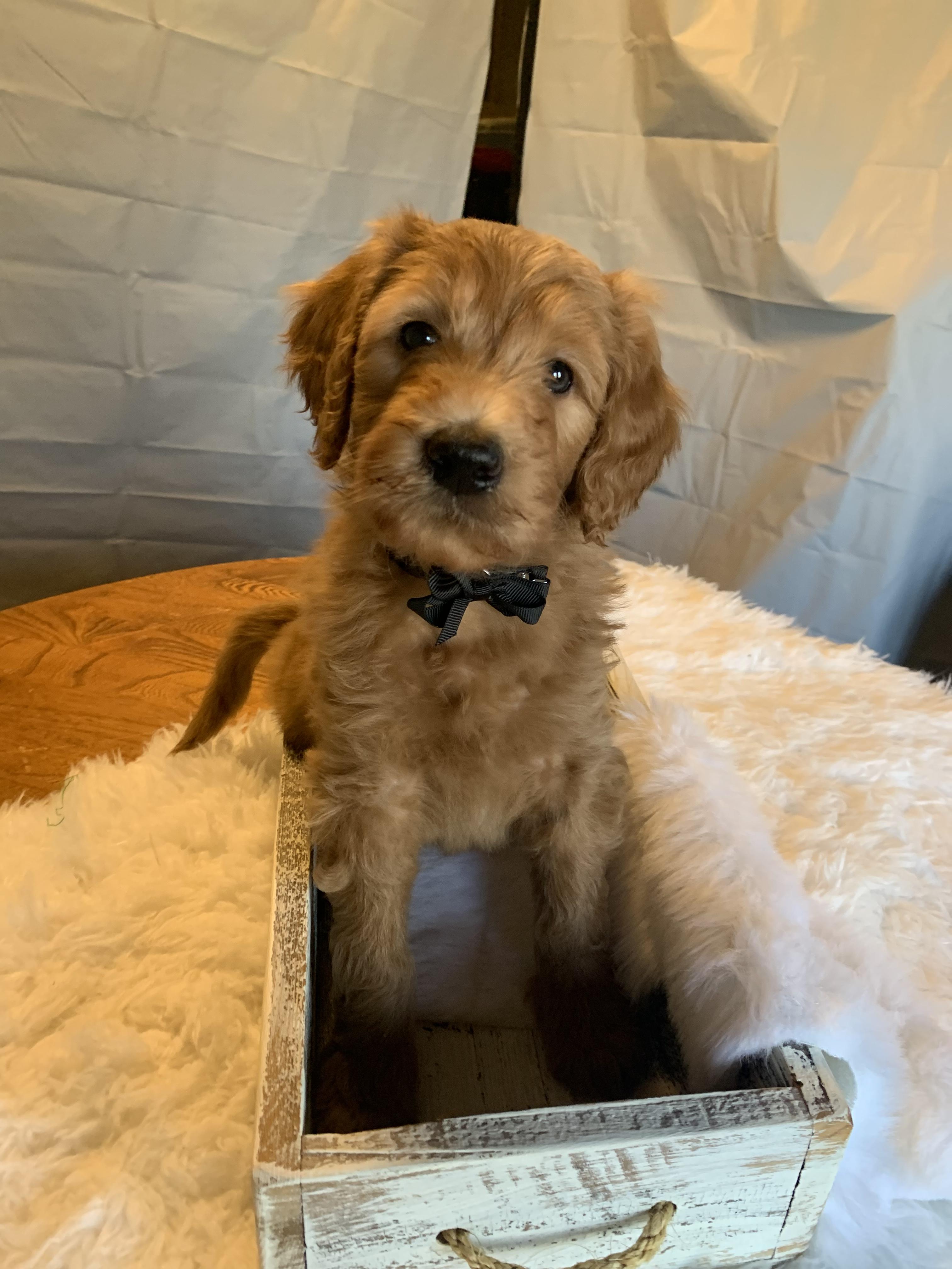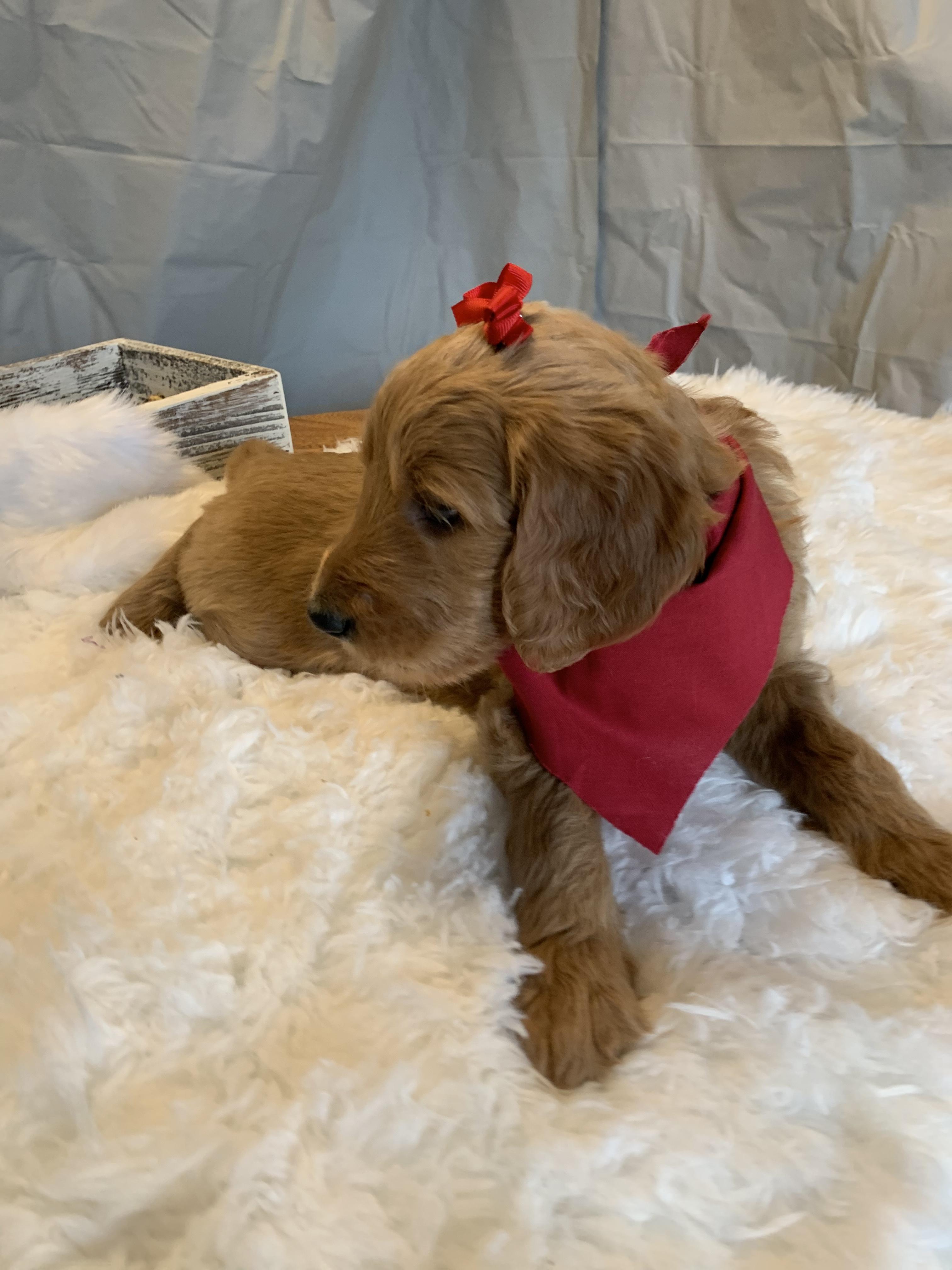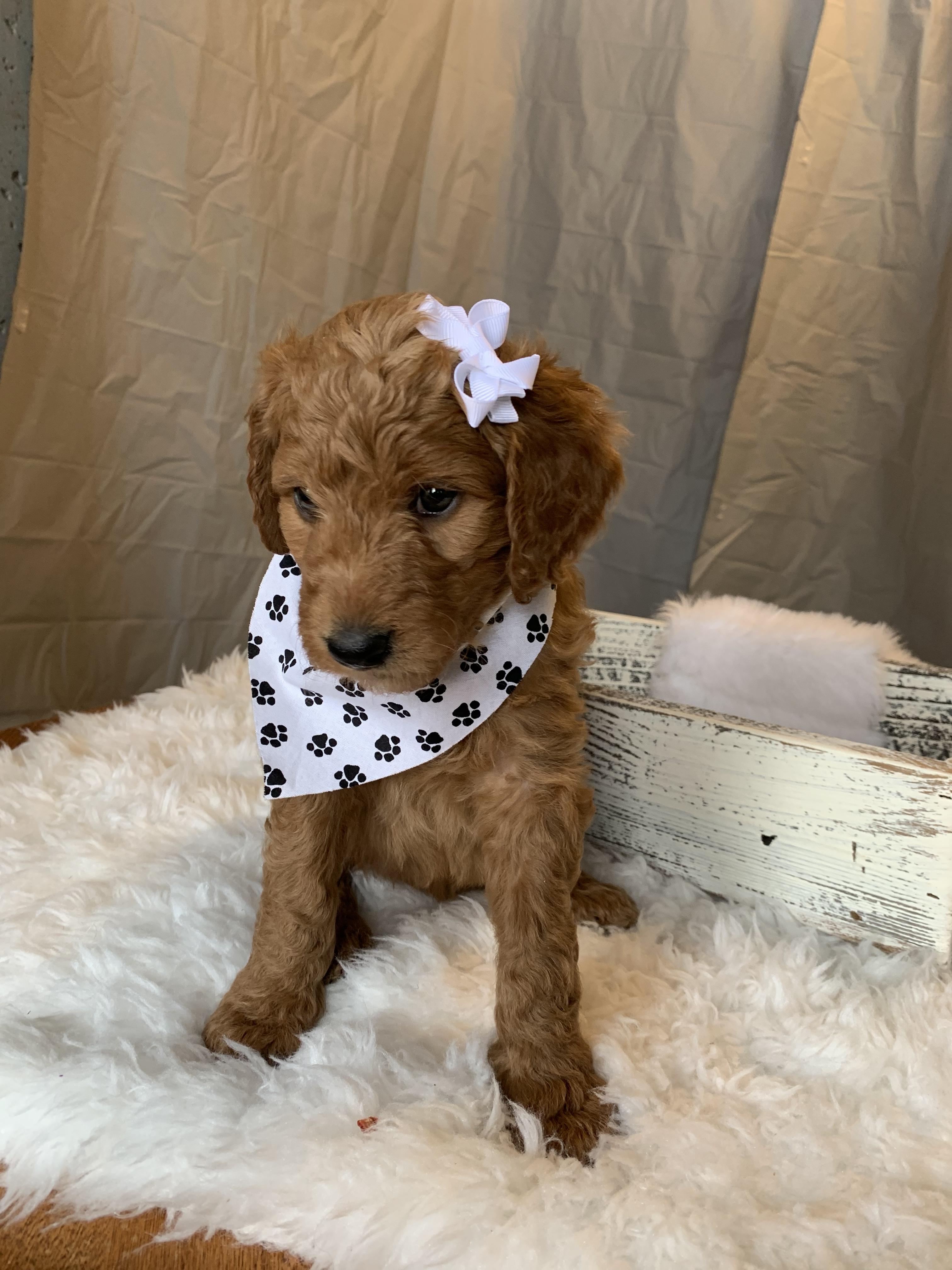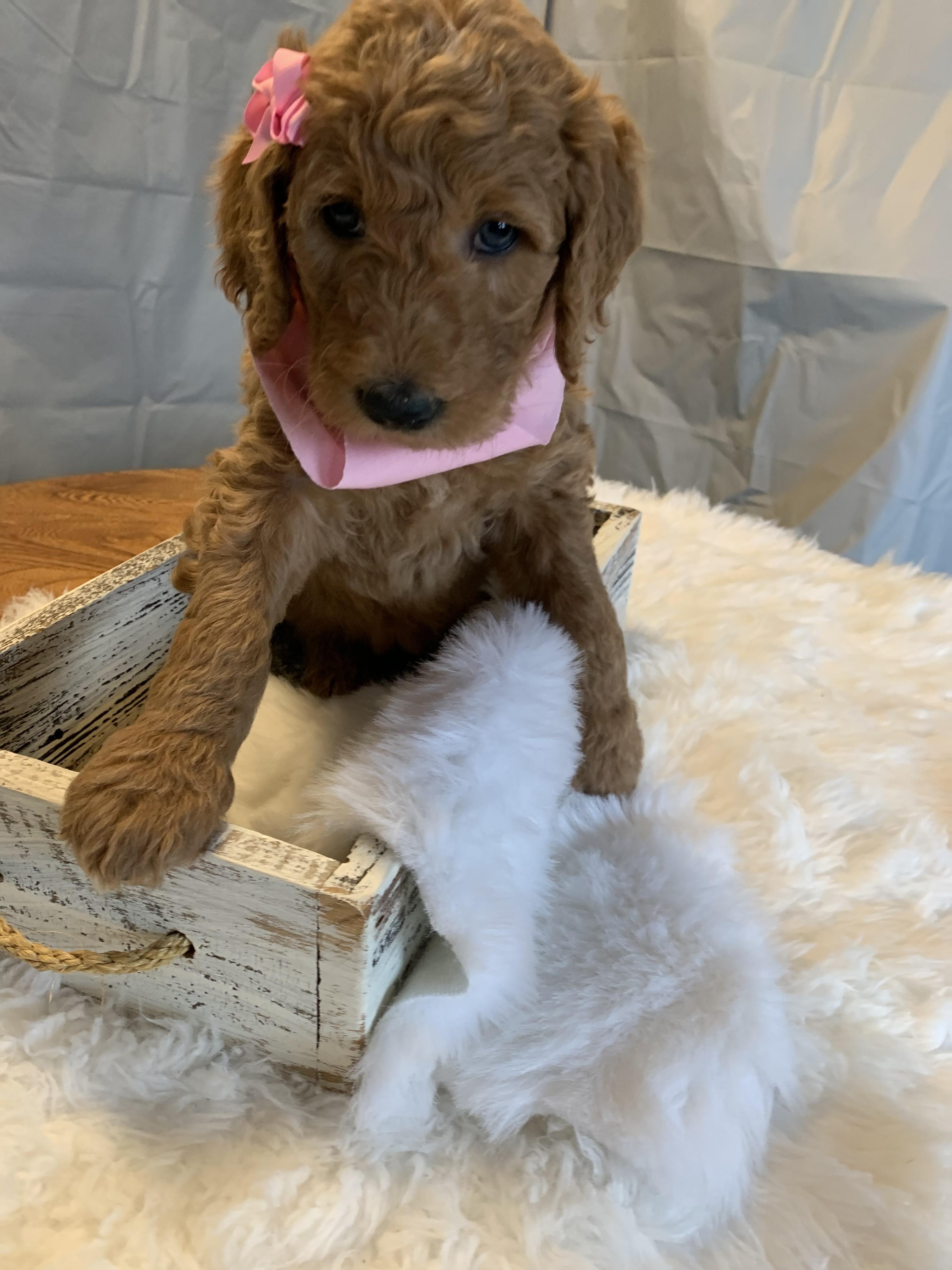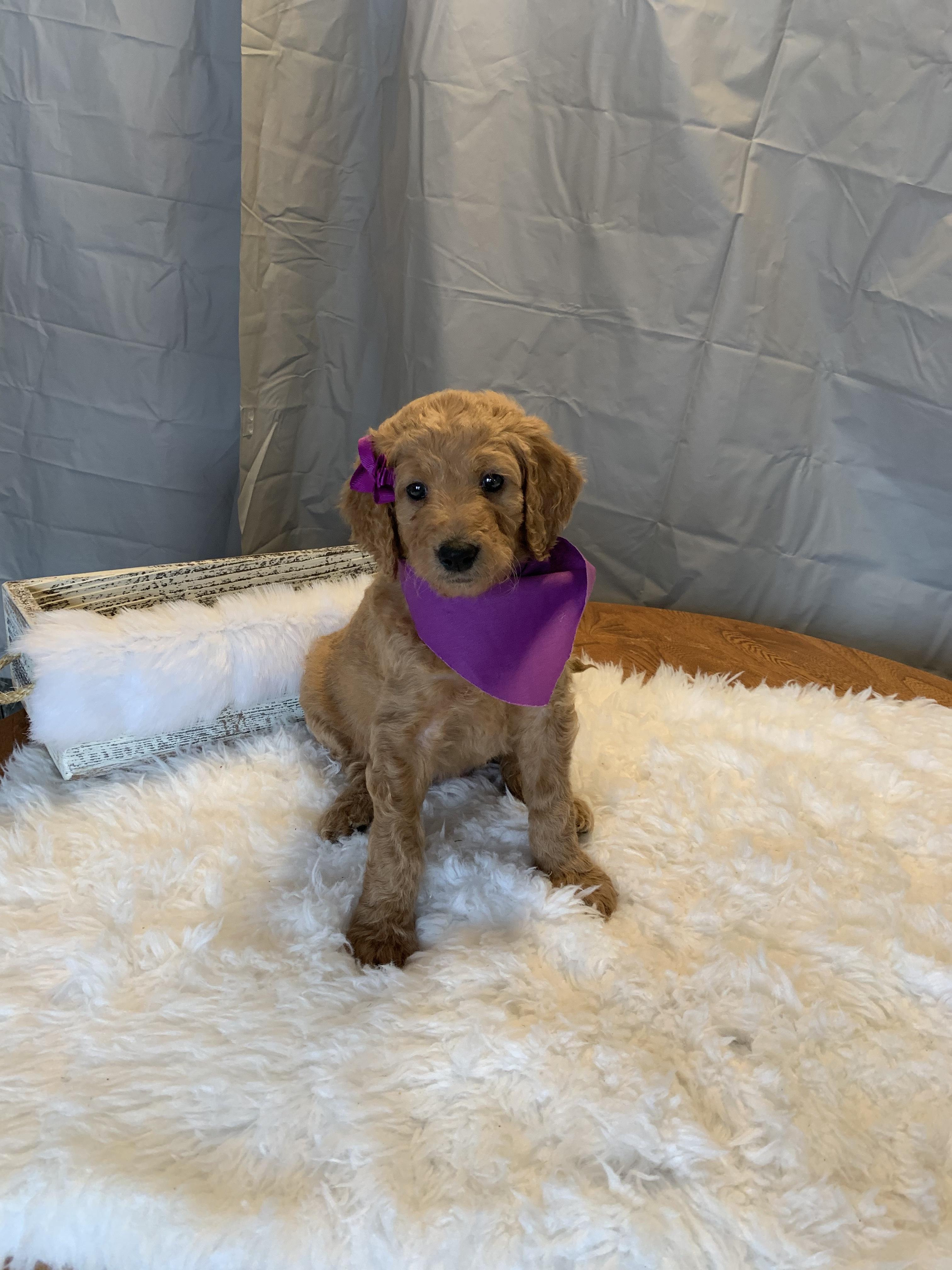 Our breeding program began when a breeder friend gifted our daughter sweet, precious Kia as a Supervised Agricultural Experience in FFA. We quickly fell in love with Kia (F1) and the Goldendoodle breed. We now have a desire to provide other families with their next family member and we believe that through Kia's (F1) sweet, loving temperament and Rover's (purebred Poodle) championship bloodlines our puppies are a cut above the rest.