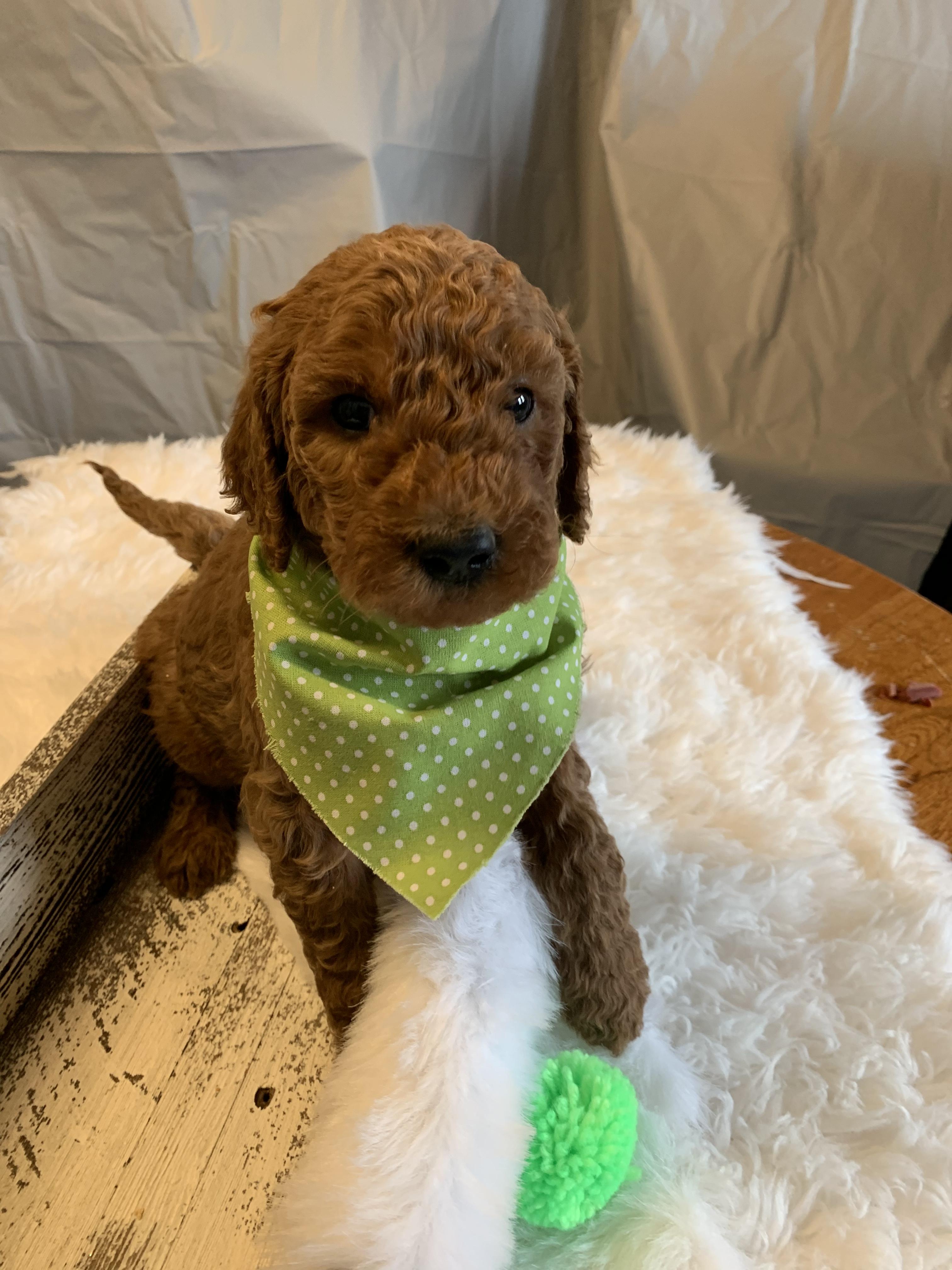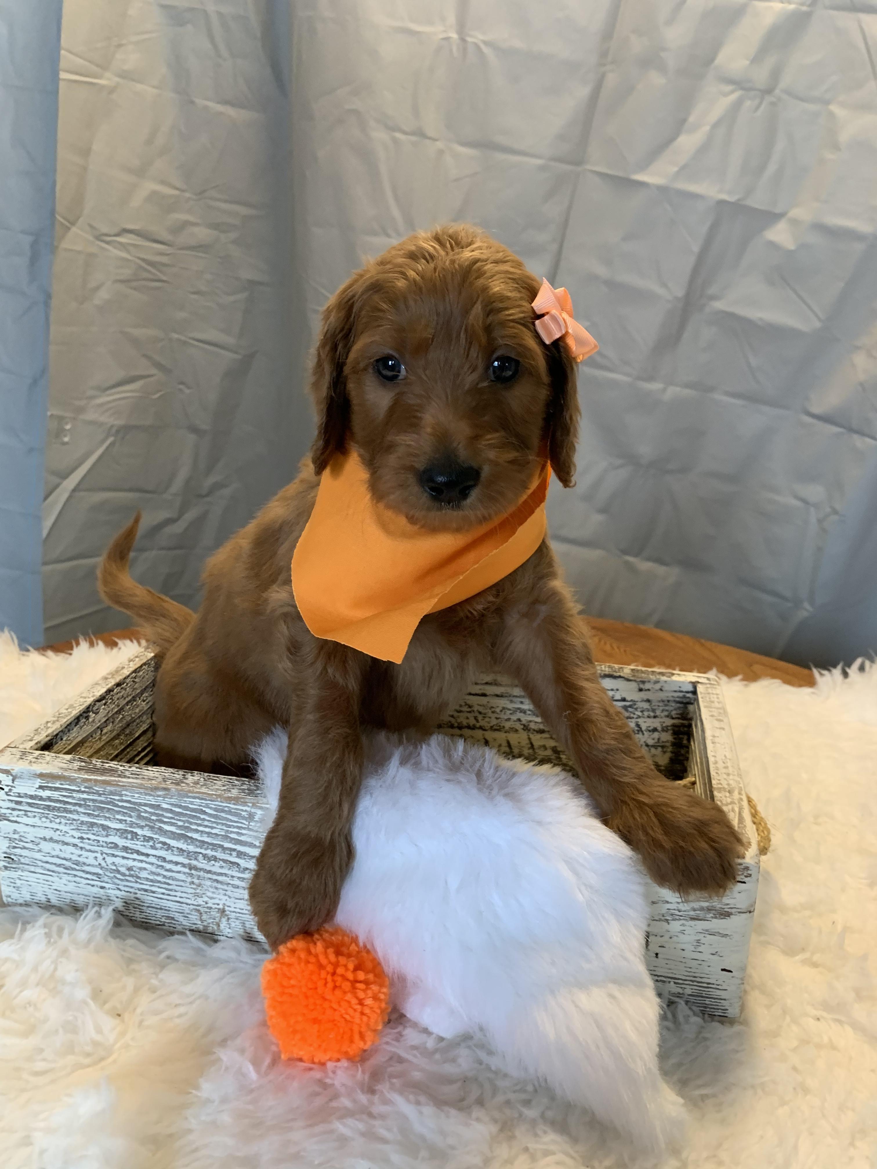 Our puppies include apricot and red. Colors will vary depending on the parent dogs.