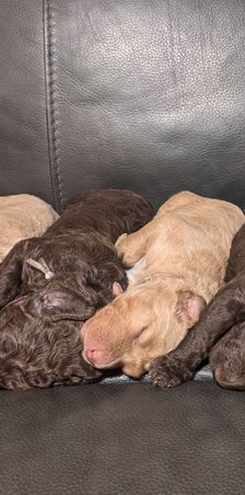 Our experience with Christy both times was absolutely beautiful! We got our first doodle baby who is now 15 months old and he's healthy and strong and absolutely beautiful. His name is Bear and he changed our lives for the better when we received him Christy was so open and so honest and so friendly and constantly in response with us about how he was doing all the way up into the day was time for us to come and pick him up and bring him home. Christy and her family are absolutely wonderful and they have such a love for what they do. Shortly down the line we received another beautiful baby from Christy and he too was an absolute joy his name is Oakley and we love him so very much. He is so wonderful and warm and he's also bears brother which we thought was super awesome. He does a little dance for us and it's truly cute. Both our babies have such different personalities but both are so loving and sweet Bear is more dominant than his brother Oakley who's older than he but all in all they have been a true blessing in our lives and I would tell anyone Christy and her family are the way to go Your pup couldn't receive a better breeder. Thank you so much Christy we truly appreciate you!