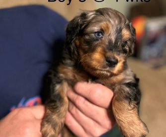 Where do I begin, I can go on and on about how truly amazing my entire experience was with Wendy and her beautiful family. From the very first message you could sense how genuine she was and not just your typical breeder looking to move another puppy and get their ~$5k. Her immediate replies, endless patience for my laundry list of questions, and extreme thoroughness made this process less like a business transaction but more like a family exchange. I originally inquired about one of her available dogs to only find out he was in the works of another family but she suggested another one - man was I beyond lucky. Wally is a puppy like I’ve never seen or can imagine. From his coat colors, to his beautiful eyes, to his amazing temperament, to his perfect bill of health (even after seen for a wellness check up by my own vet two days after bringing him home), and his endless patience I couldn’t ever think of a puppy any better. I thank Wendy and her family for getting this little gentleman to be where he is. The temperament of our little puppy is incredible and the smarts of him beam. Wendy even helped me with the process of surprising my daughter with our new puppy. A week later and she has continuously checked in and has helped me with anything I had questions on. I can go forever with how perfect she has been and I mean perfect. I would use Wendy over and over again, she has my complete trust and is truly overly a saving grace and made my daughter and I complete with our newest little puppy!