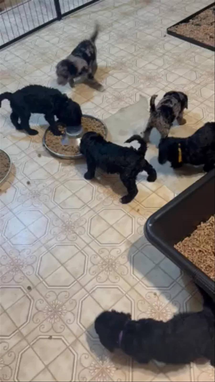 4 weeks old. They experienced lots of first over the weekend. First time trying puppy food! Playing with toys and they were freed from the newborn whelping box! Now they have more room to run and play. They are still learning how to use those legs! 😂 these babies are sweet, lovable and playful!