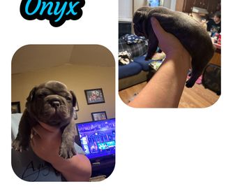 Our puppies include brindle, black and white, blue, and black. Colors will vary depending on the parent dogs.