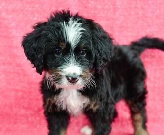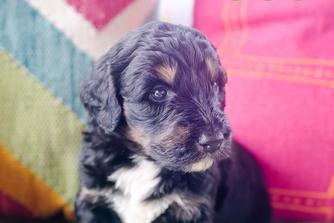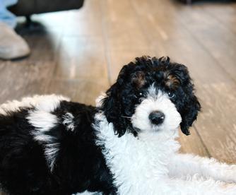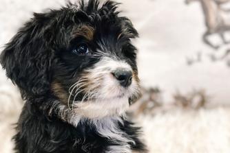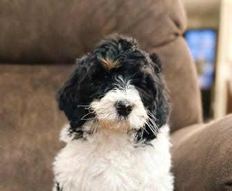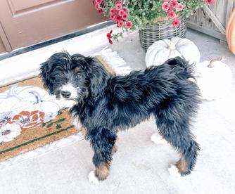 Our Bernedoodle puppies include sable, black and white, tri-color, and phantom. Colors will vary depending on the parent dogs.
