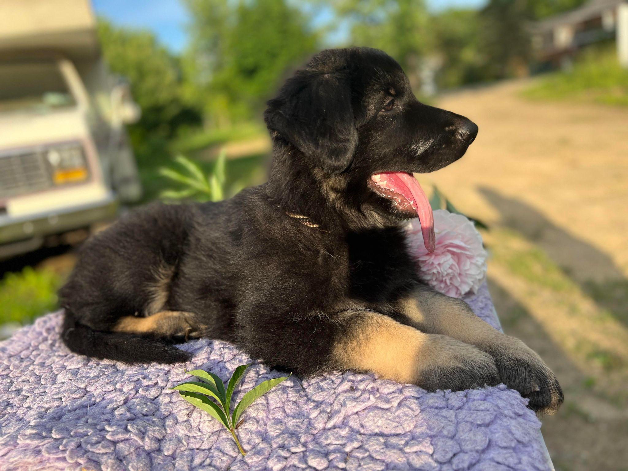 "Posh" dam of the litter born 4/5/2022 is a female German Shepherd over 3 years old. Carefully selected as a great representative of her breed, Arlene decided to make her part of their program. Arlene has passed Good Dog’s screening process, which involved a review of their breeding practices, environment, and the mental and physical health of their dogs.