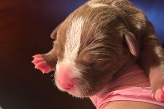 These little guys are growing so fast. We weigh them every night and their weight gain is right on track. It's hard to believe that they will be going to their new families so soon. Before they were born it seemed like it was taking forever and now time is flying by. We're down to only Clio and Theia looking for their new families. If you're considering having one of these little girls, don't wait too long. Please check out their updated photos on their profile.