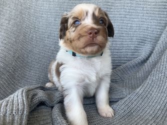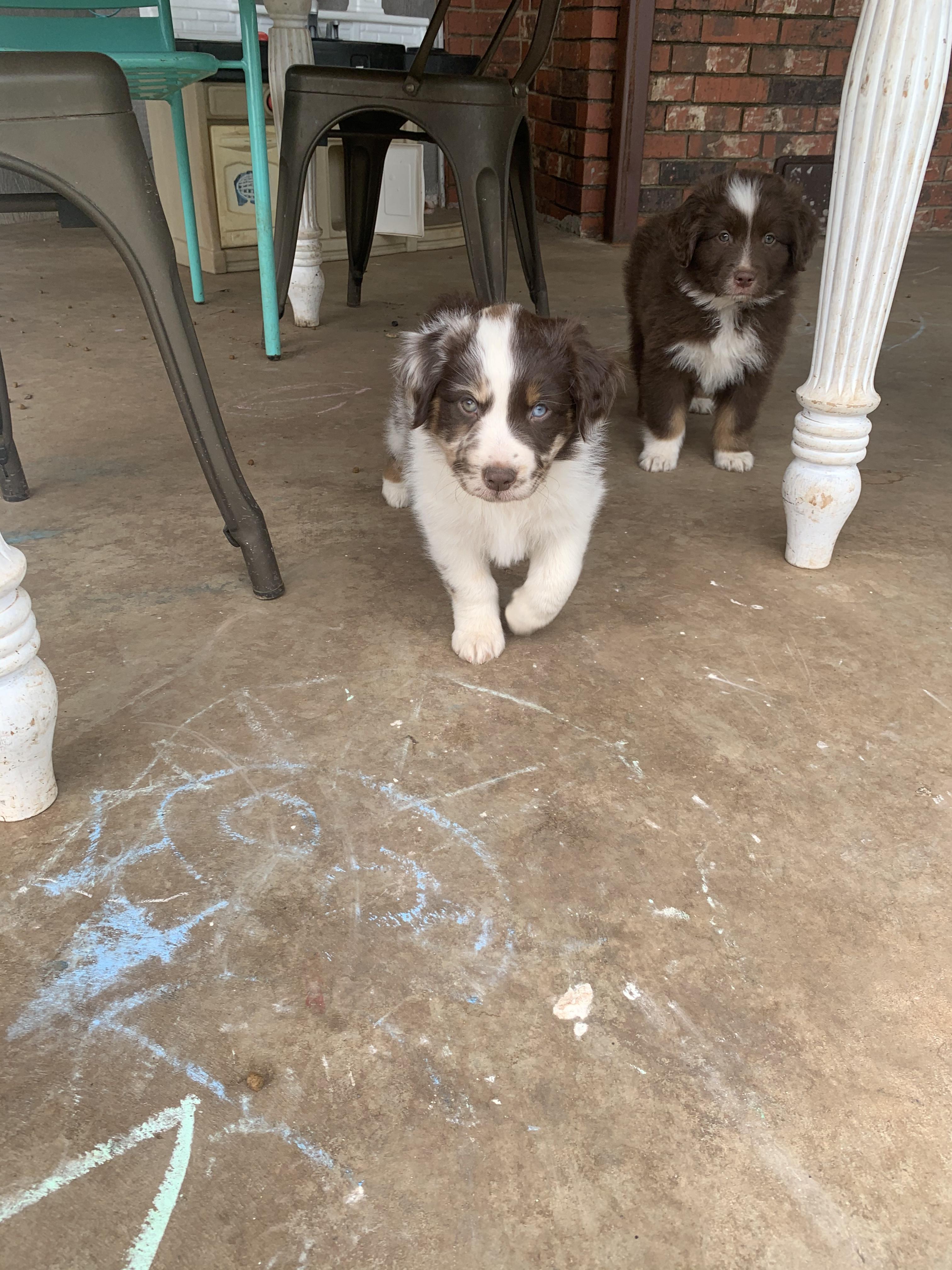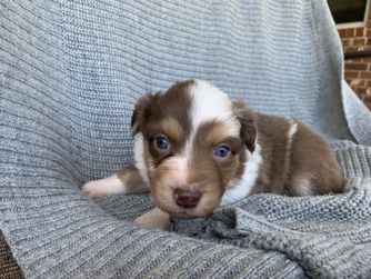 Our puppies include red tri and red merle. Colors will vary depending on the parent dogs.