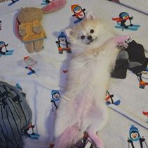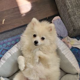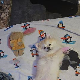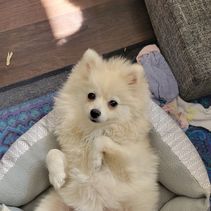 I was searching for a pom breeder for a while until I finally found Andra on Good Dog. I wasn't sure what coloring I was after, but as soon as I saw little Sugar, a cream party, my heart was stolen. Andra and I immediately got along and we facetimed the very first day I contacted her so I could meet little Sugar. So spirited and wild, I knew she was going to be perfect. Throughout the whole process, Andra and I were able to work with each other's schedules with relative ease and excellent communication. Considering all the scams out there nowadays, I feel very lucky that I found Andra at Wynter Wonderland Poms and that from our first contact, felt so at ease. I felt I could trust her and her family and that the wild child I'd found would be perfect for my multi-dog household. Everything on the exchange went perfectly and Sugar, now Coconut, has become an essential member of our household. Every person who meets her loves her, she'd unendingly friendly, and I don't think I'll ever try a new breed again.