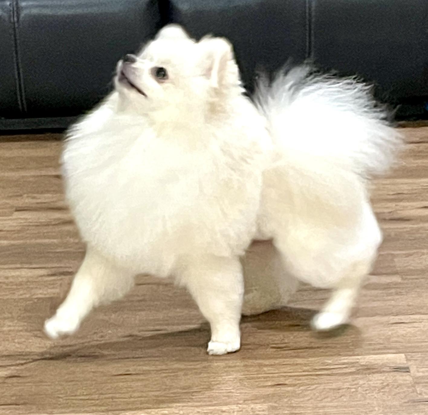 Stormy is a male Pomeranian. Carefully selected as a great representative of his breed, Haley decided to make him part of their program. Haley has passed Good Dog’s screening process, which involved a review of their breeding practices, environment, and the mental and physical health of their dogs.