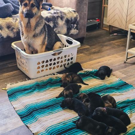 Our puppies include sable, black, black and red, black and tan, and bi-color. Colors will vary depending on the parent dogs.