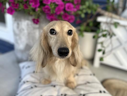 Butterscotch is a female Dachshund. Carefully selected as a great representative of her breed, Rebecca decided to make her part of their program. Rebecca has passed Good Dog’s screening process, which involved a review of their breeding practices, environment, and the mental and physical health of their dogs.