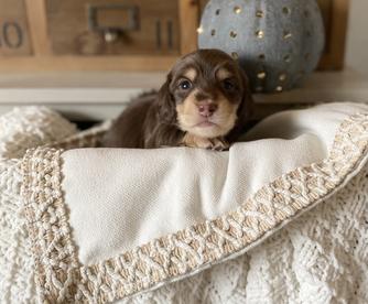 Rebecca is phenomenal breeder! She os very knowledgeable about the breed, and good breeding practices. You can tell she is passionate about what she does and dedicates an extreme amount of time, effort, love, and care into breeding and raising her puppies. She kept us updated through the whole process, including updated weekly photos. The process of working with her to get our puppy was very smooth. I've been around and/or owned dachshunds most of my life, and the puppy we picked up from her is honestly one of the sweetest I have ever had. Very healthy, spunky, loving, and absolutely stunning. If anyone is looking for a dachshund to make part of their family, I cannot recommend Rebecca's puppies highly enough.