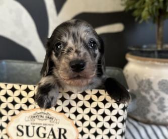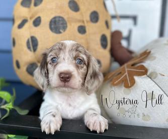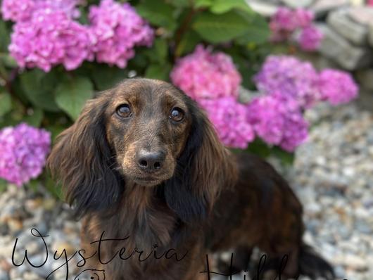 I'm Rebecca F., the breeder behind Wysteria Hill Doxies located in Bryan, OH. Our program is committed to only breeding dogs that we feel are excellent representations of their standard and will make a positive contribution to their breed and to the families who love them. We do not breed our dogs unless they are genetically tested. We are dedicated to always having responsible policies when it comes to breeding, socializing, and training our pups. We strive to breed healthy, quality pups that can fit any lifestyle. You can visit our Social Media pages for more pictures & videos showing daily life of our pups & how they are raised. You are more than welcome to reach out to us there to discuss any of our puppies. All pups are raised in our home and we use many factors for their upbringing to help them to be the best pups for you once at your home.