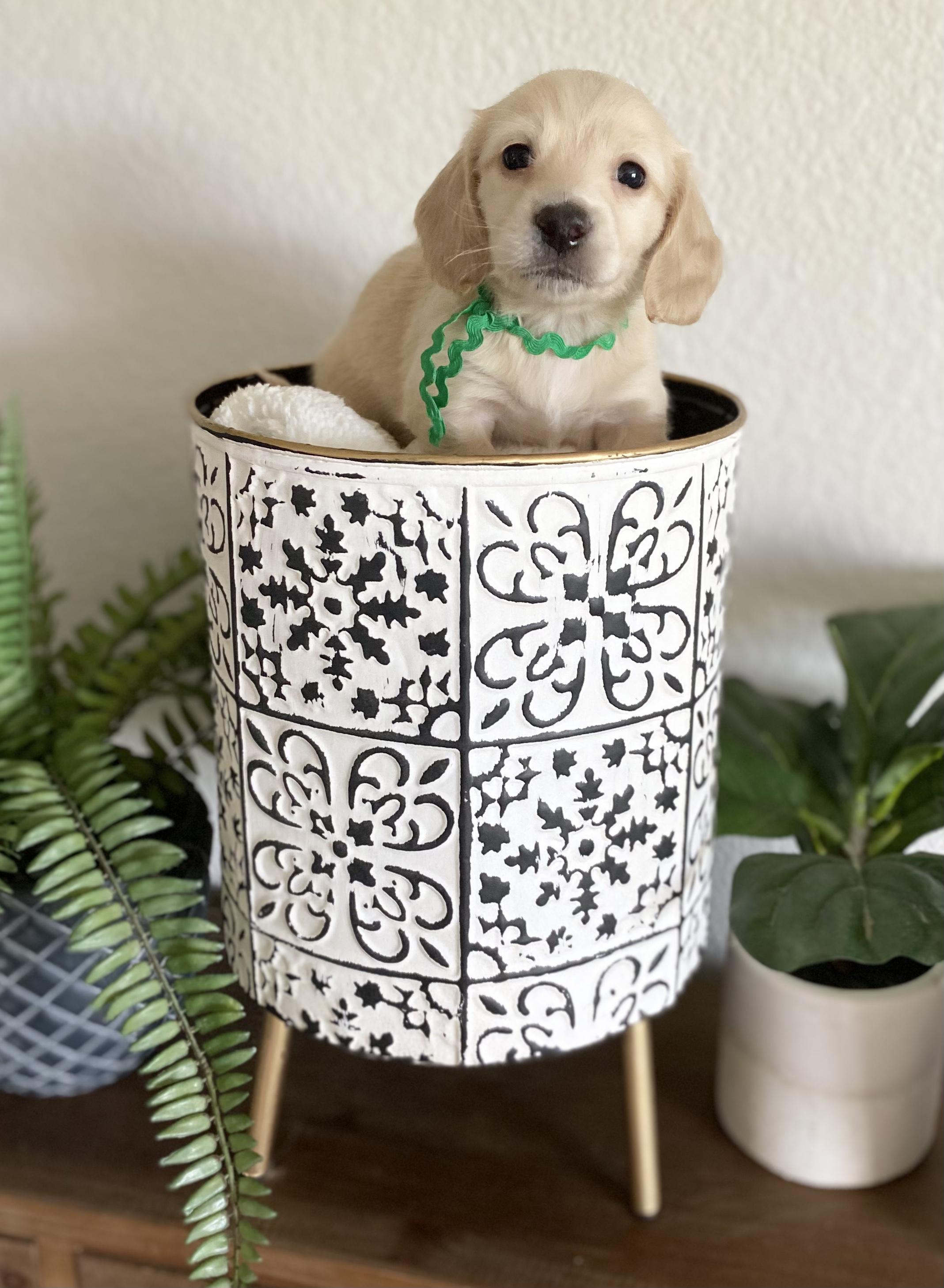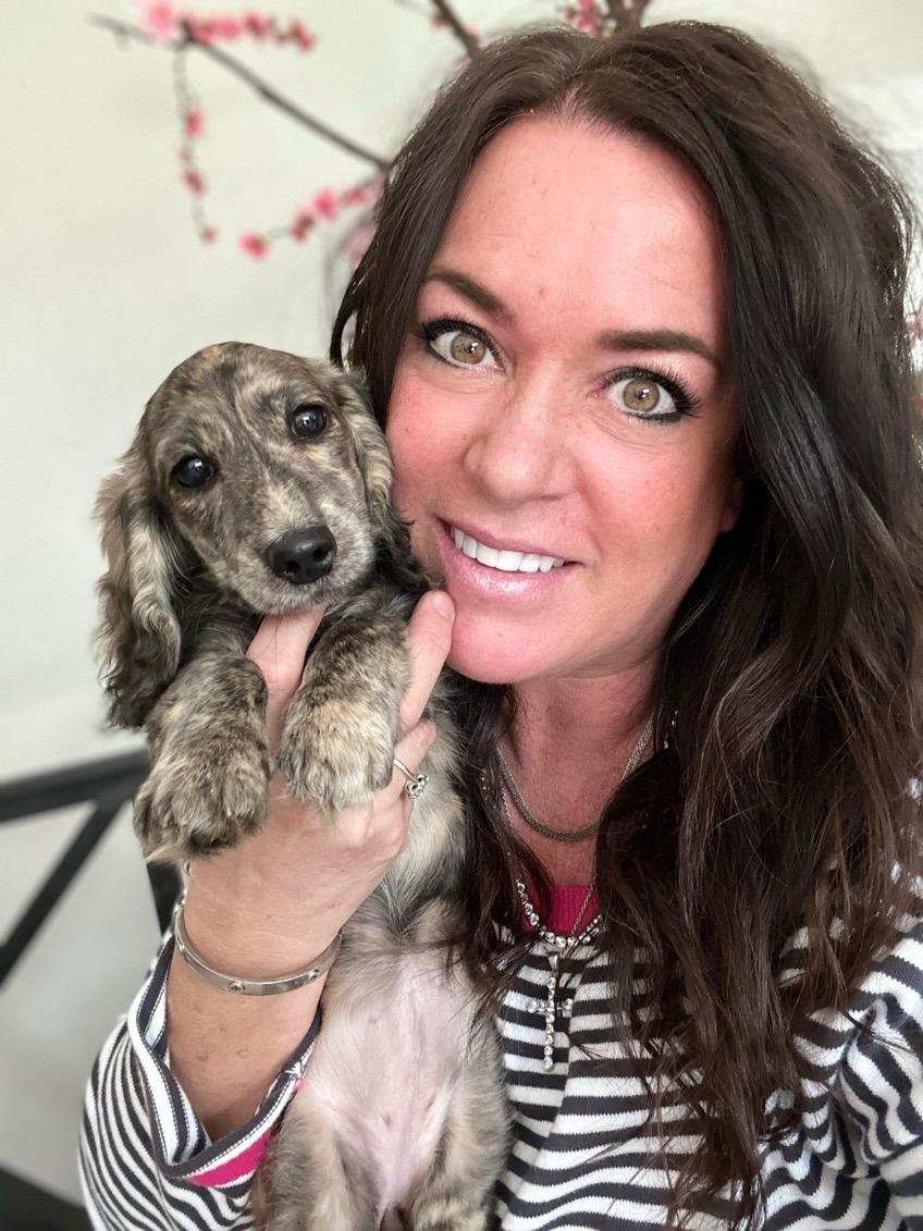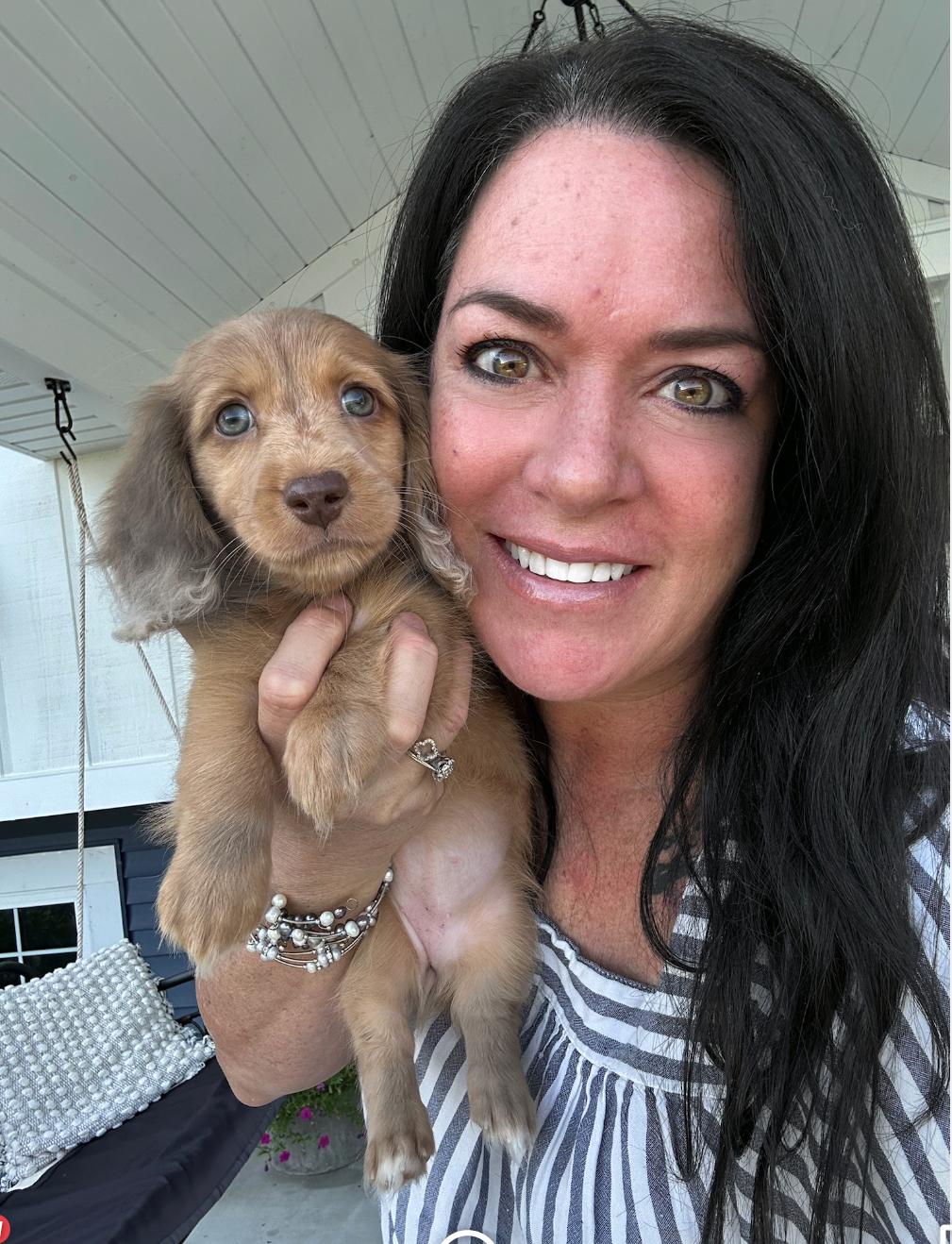 I saw this couple walk by my home with these stunning cream dogs. I ran out to ask them what breed they were. When they said Golden retrievers I was shocked because I had an American golden at that time and had never seen this color before. Then & there I decided one day I was going to retire from doing hair & learn about breeding. That following Spring we got our first girl Annie. Then I was approached about co owning a mini Doxie for breeding. That boy wasn’t able to be bred and several people were interested in mini dachshunds so we started our search for a couple females, Hazel & Olive came about two years after our Golden Annie. That was 8 years ago now. Best decision I ever made. I love what I do and enjoy filling people’s home with the love of a puppy that I’ve raised.