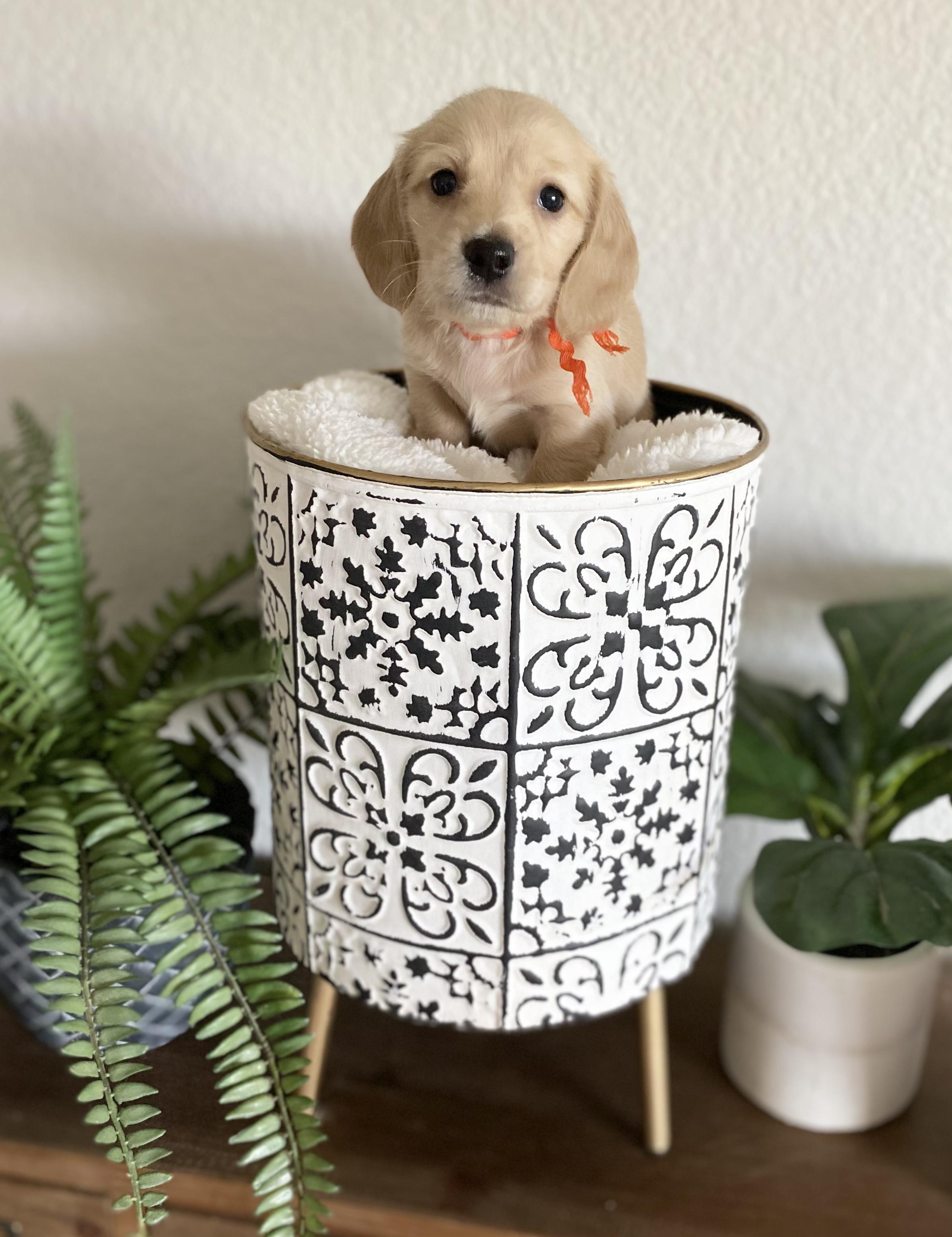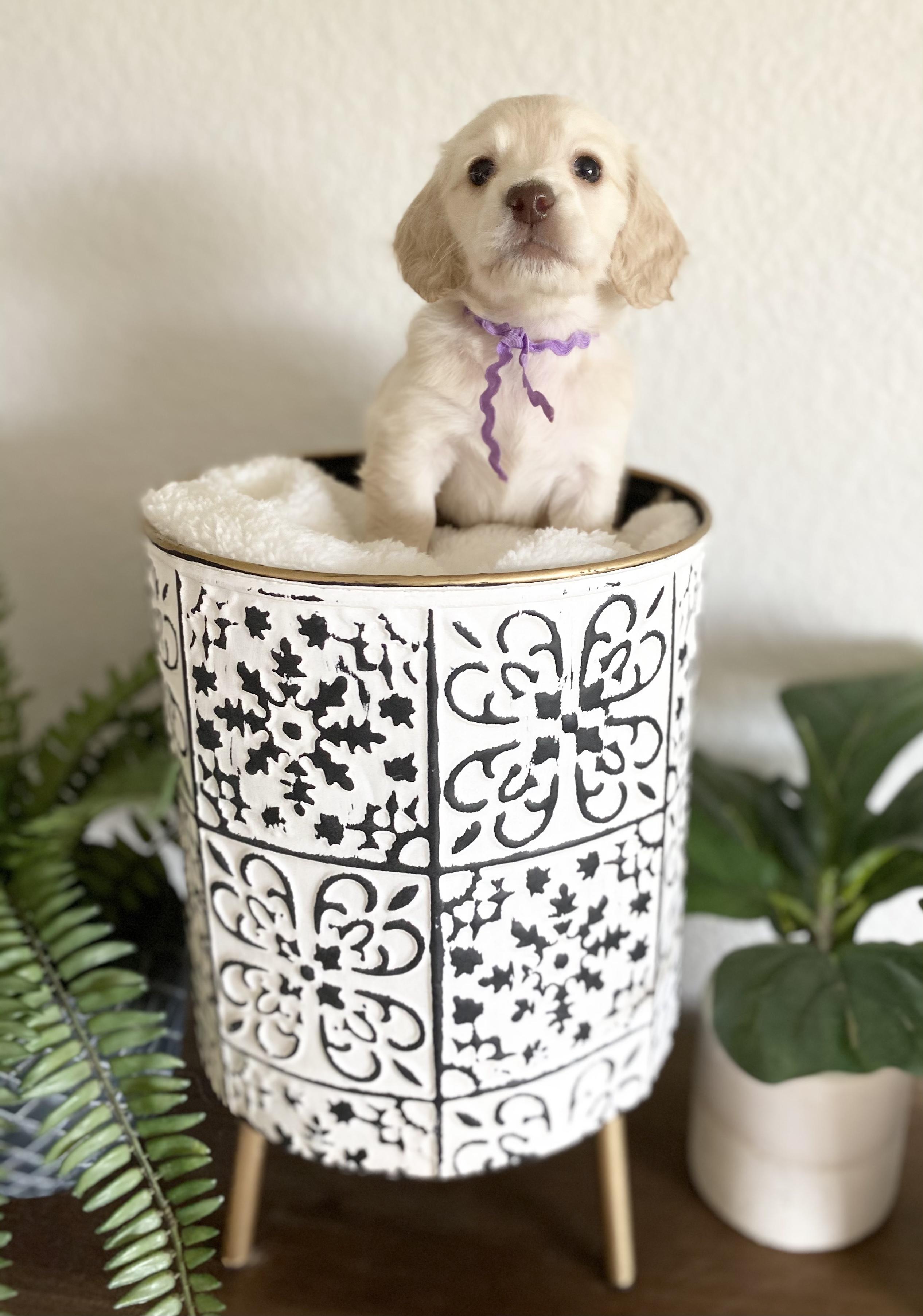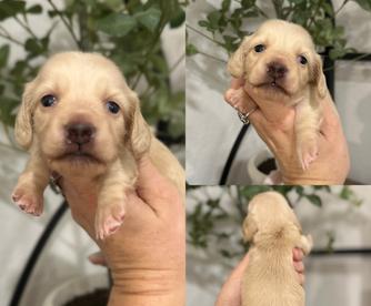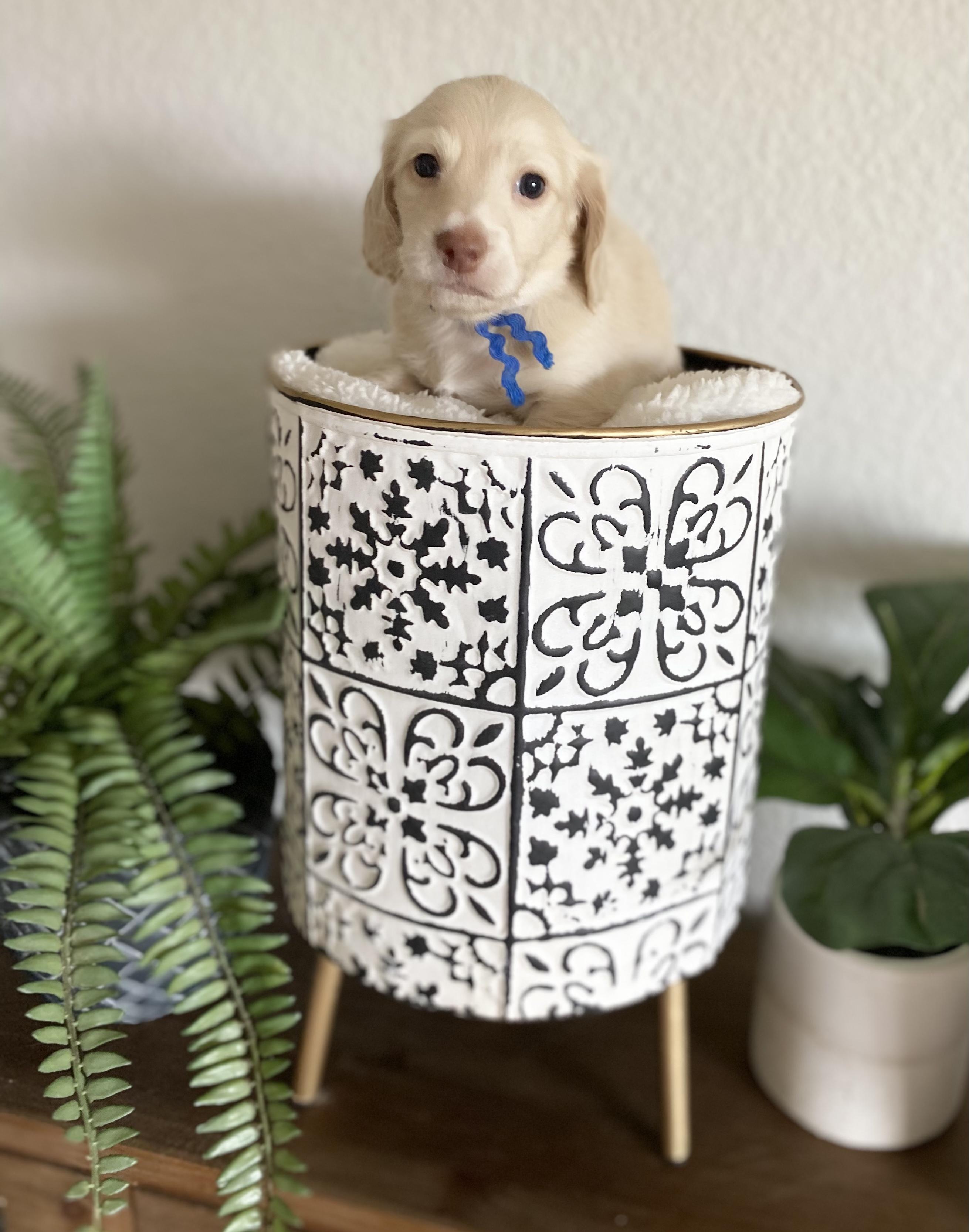 I saw this couple walk by my home with these stunning cream dogs. I ran out to ask them what breed they were. When they said Golden retrievers I was shocked because I had an American golden at that time and had never seen this color before. Then & there I decided one day I was going to retire from doing hair & learn about breeding. That following Spring we got our first girl Annie. Then I was approached about co owning a mini Doxie for breeding. That boy wasn’t able to be bred and several people were interested in mini dachshunds so we started our search for a couple females, Hazel & Olive came about two years after our Golden Annie. That was 8 years ago now. Best decision I ever made. I love what I do and enjoy filling people’s home with the love of a puppy that I’ve raised.
