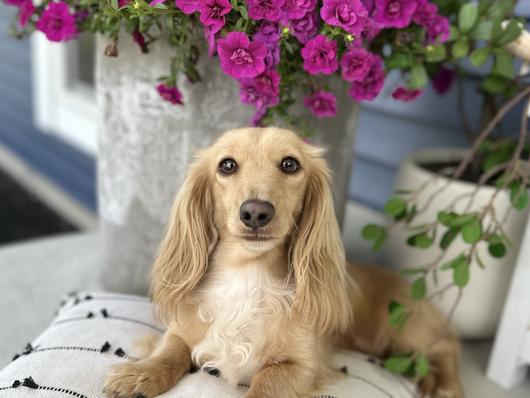Posie is a female Dachshund. Carefully selected as a great representative of her breed, Rebecca decided to make her part of their program. Rebecca has passed Good Dog’s screening process, which involved a review of their breeding practices, environment, and the mental and physical health of their dogs.