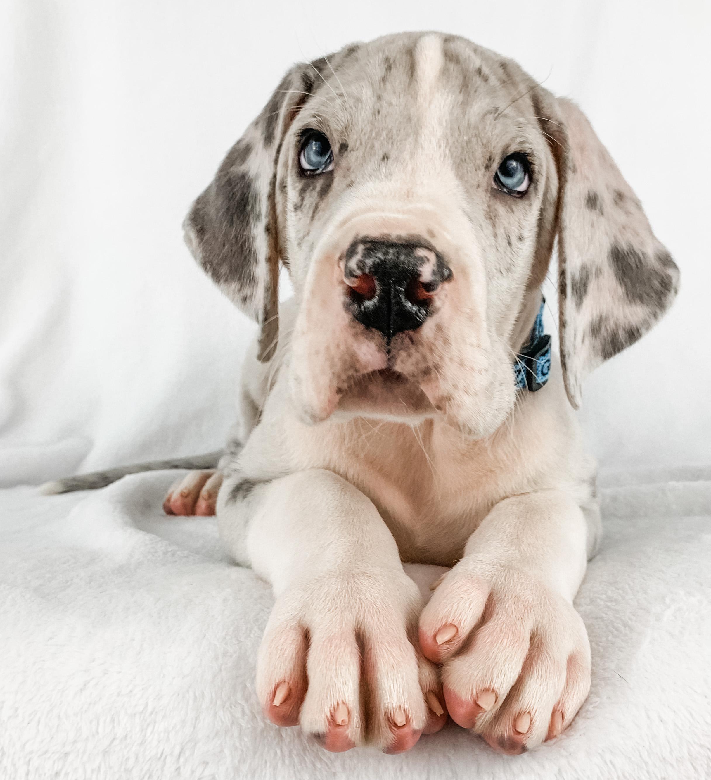 Our Yorkshire Terrier puppies are parti. Dachshund puppies include cream, red, black, chocolate, fawn (isabella), brindle, fawn (isabella) and tan, fawn (isabella) and cream, chocolate and tan, chocolate and cream, blue and tan, blue and cream, black and tan, black and cream, and dapple. Great Dane puppies include mantle merle and merle. Colors will vary depending on the parent dogs.