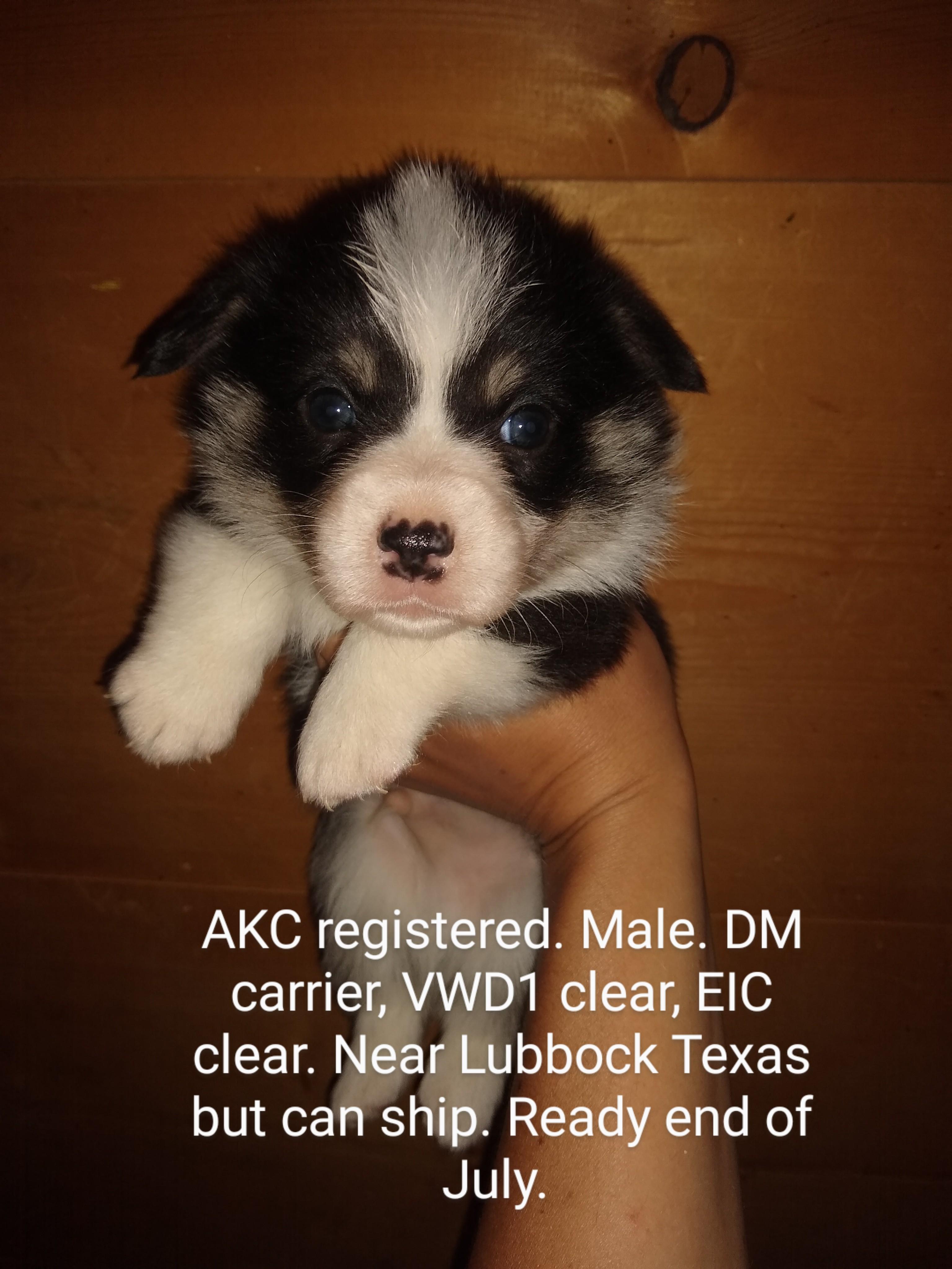 Riggs is AKC. Health tested clear for DM, VWD1, and EIC. He's a fun dog with a BIG Personality.