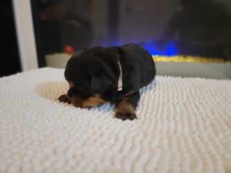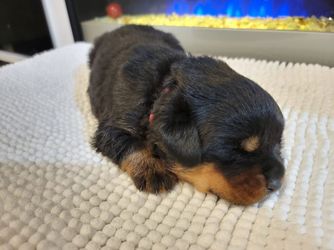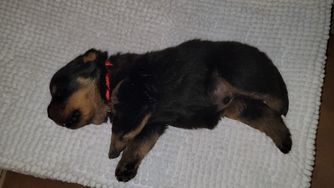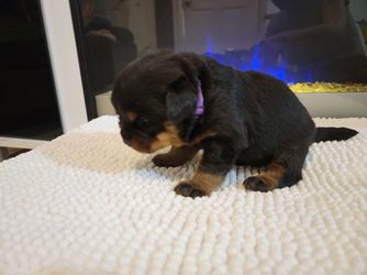Our Rottweiler puppies include black and mahogany and black and tan. Yorkshire Terrier puppies include black and tan and tan. Colors will vary depending on the parent dogs.