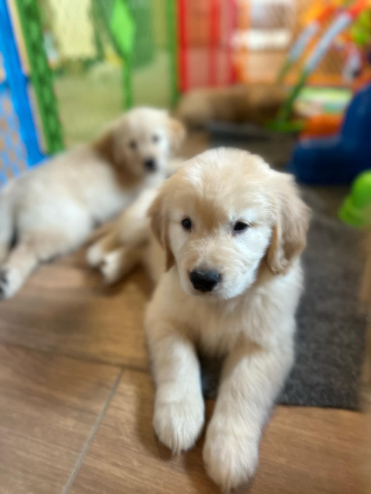 Nugget is a lovely golden girl, moderate in size but huge in heart. She is a loving companion and a great co-pilot on roadtrips. She enjoys going to scent work class and practicing Rally Obedience. She has a very waggily tail which she tends to pass on to her babies, along with her very loving and biddable spirit.