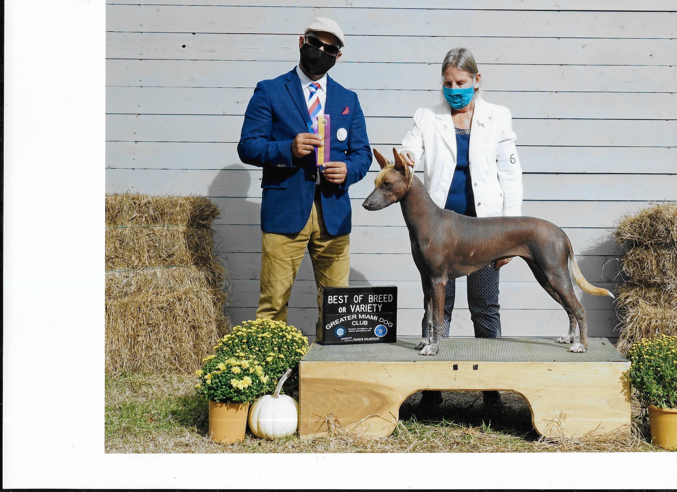Buck has a fabulous temperament and loves everyone.............not your typical Xolo temperament. He is very athletic and loves to run daily on our 5 acres.
