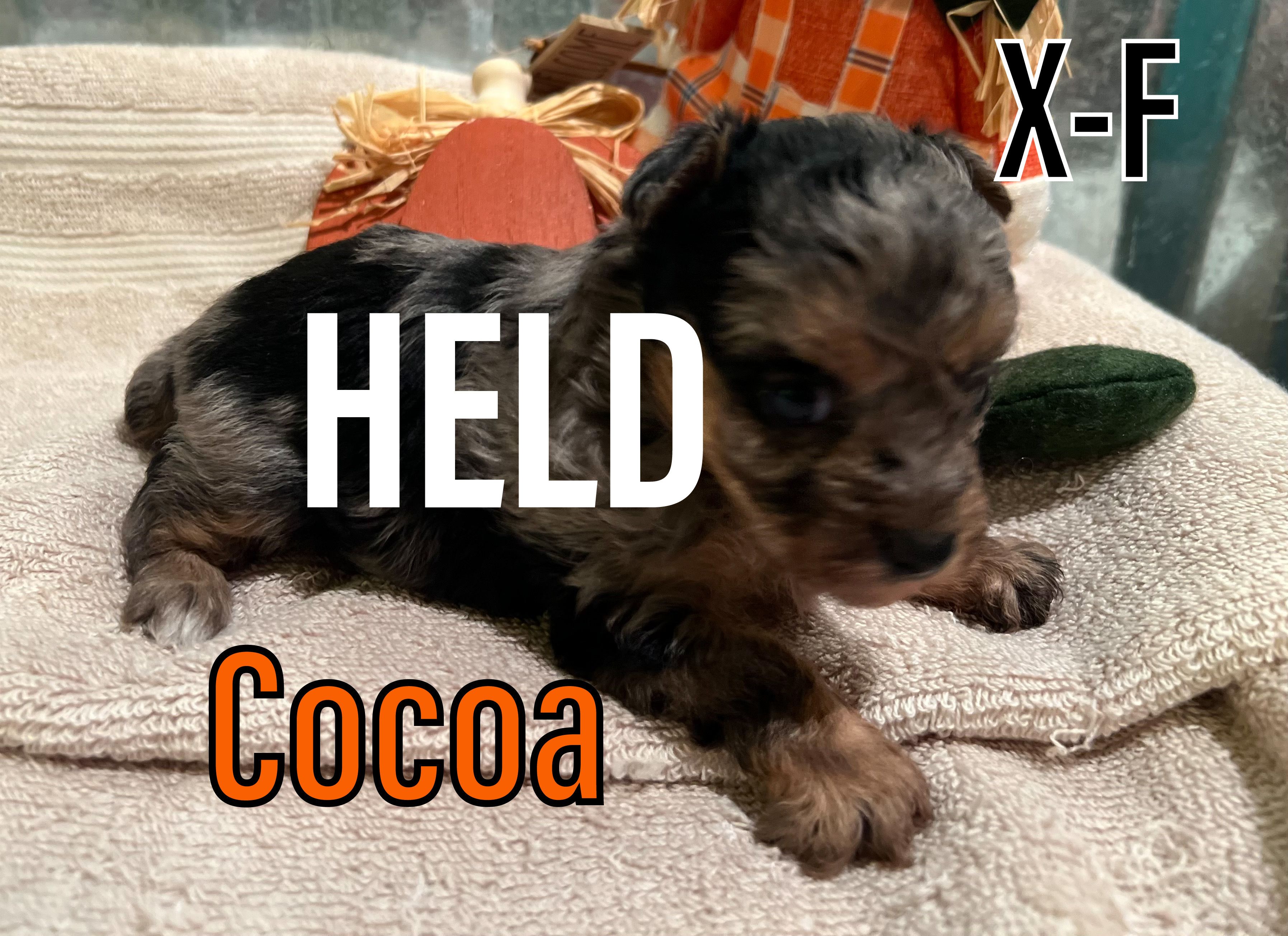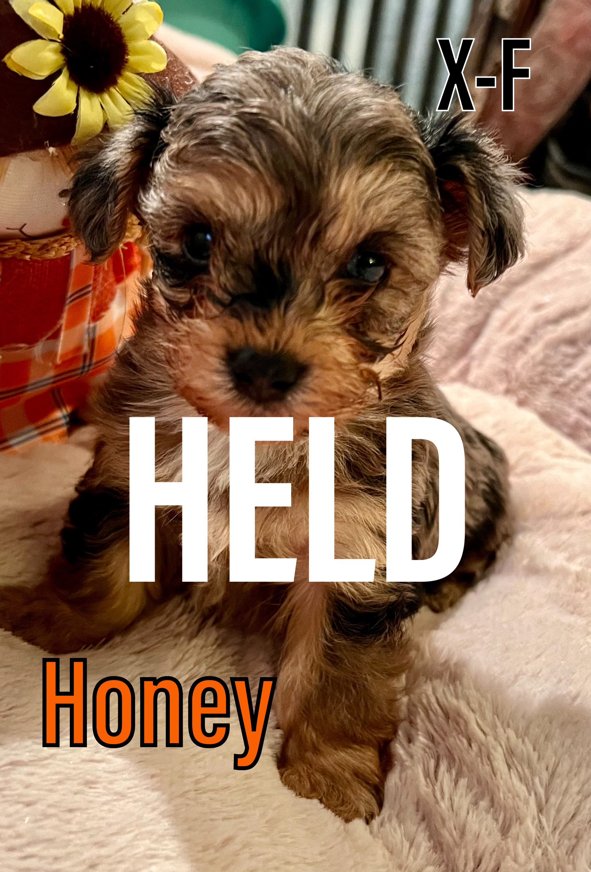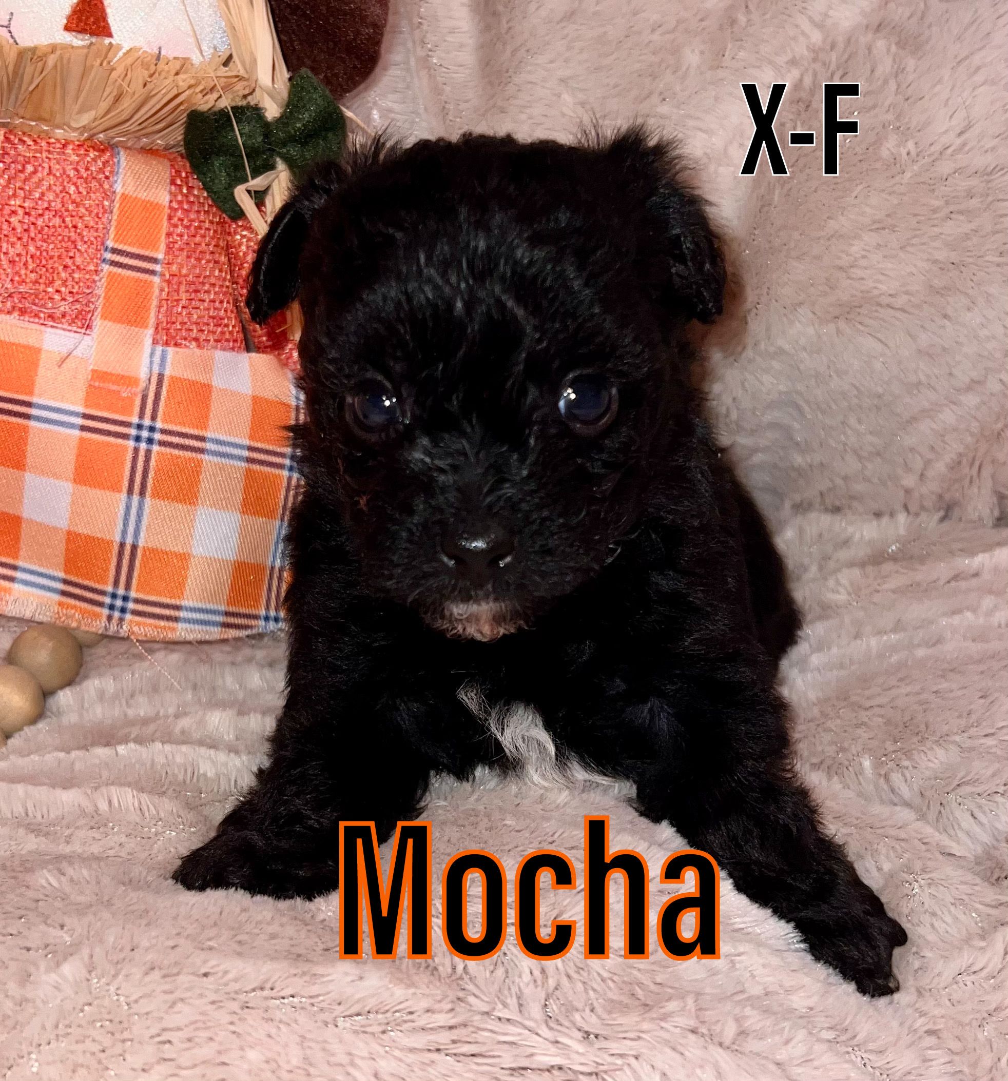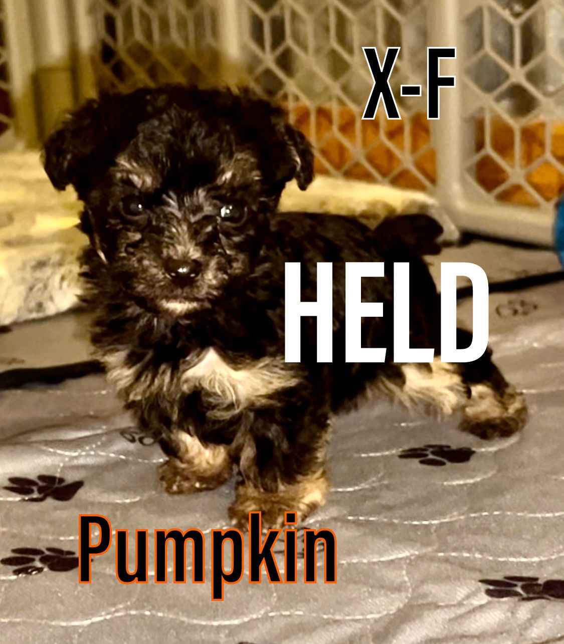 Morkie puppies include black & tan tri-color and white and tan. Yorkshire Terrier puppies are black and tan. Colors will vary depending on the parent dogs.