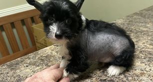 Very gentle natured and smart Chinese Crested. She is a very hairy hairless so you can have best of both worlds when it comes to her coat. She is 6 months old house trained and spoiled