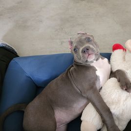 Because of Anthony, the process to get our new puppy was smooth and stress-free. Anthony responded to our questions promptly, and shared a wealth of knowledge regarding the American Bully breed. The gift bag that came with our new puppy was perfect! We are enjoying every moment with our new puppy.