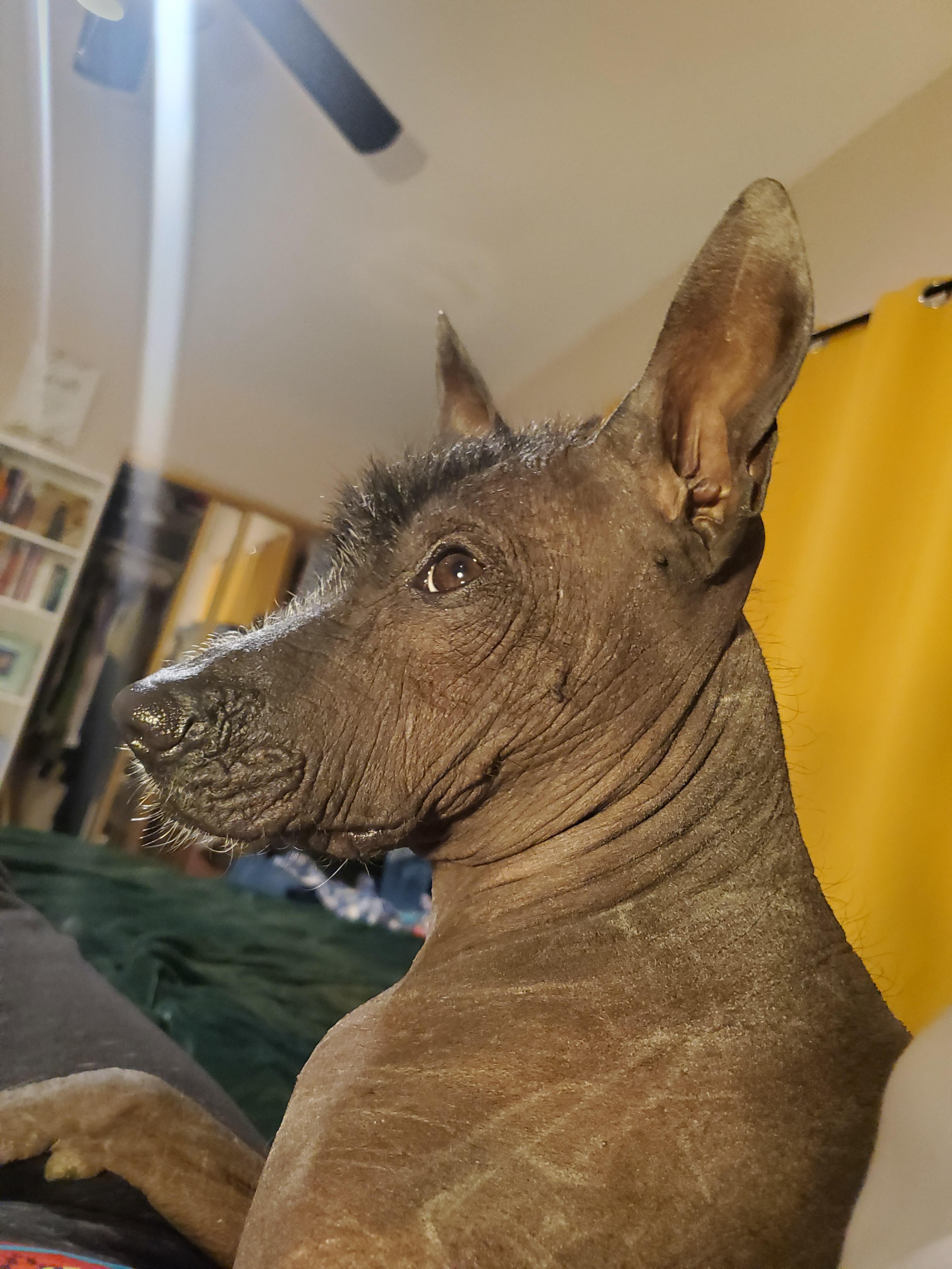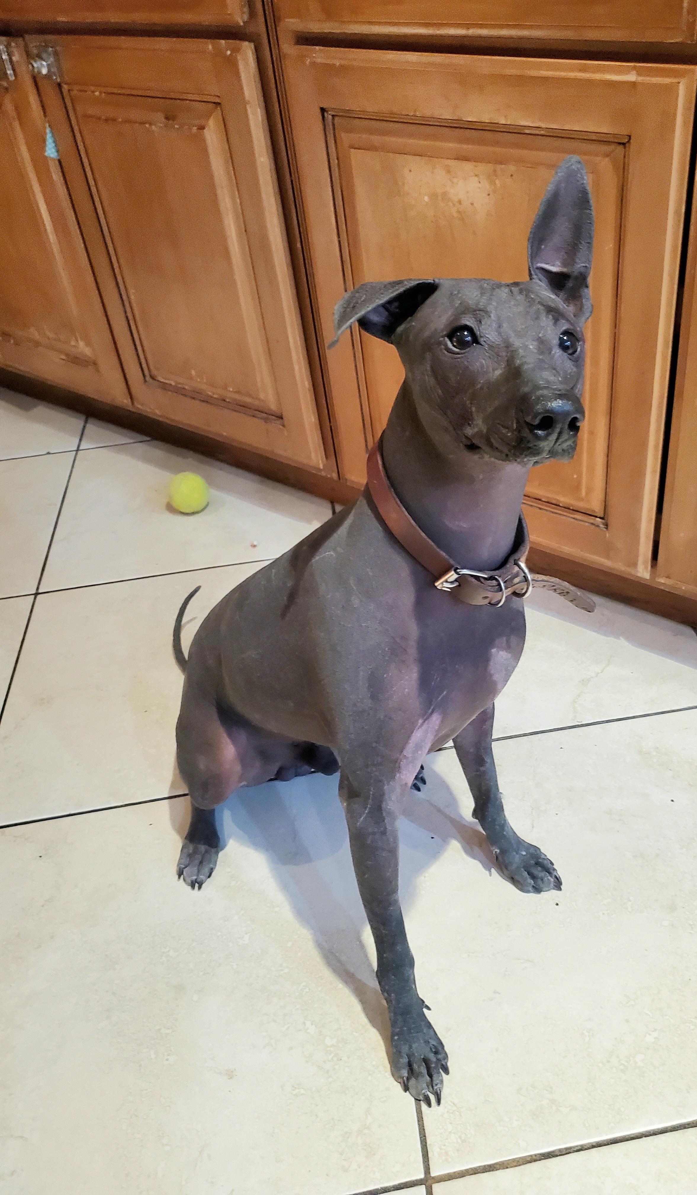 Enoch is a male Xoloitzcuintli. Carefully selected as a great representative of his breed, Vanessa decided to make him part of their program. Vanessa has passed Good Dog’s screening process, which involved a review of their breeding practices, environment, and the mental and physical health of their dogs.