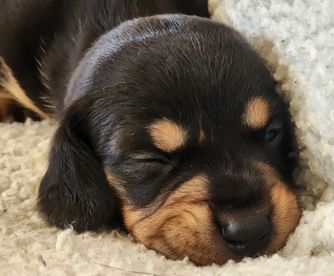 Our puppies include piebald, red, black, wild boar and tan, chocolate and tan, black and tan, and dapple. Colors will vary depending on the parent dogs.