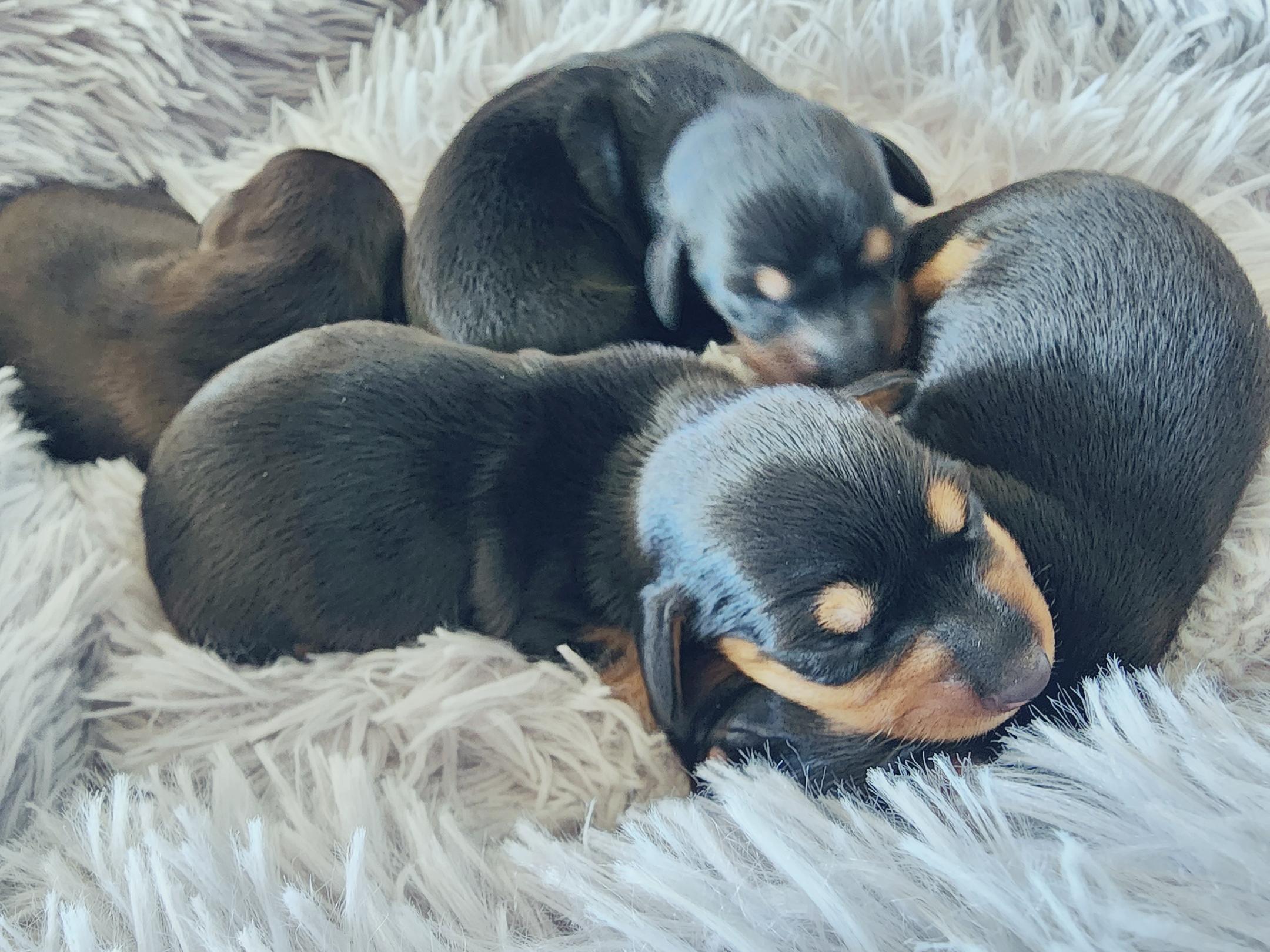 We had our very first Miniature Dachshund and we decided we wanted another, so we looked for a stud to breed with our female and we kept one of her puppies. We went from 1 to 7 within a few years because we love them so much!