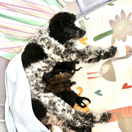 I'm Yaliang Z., the breeder behind Yaliang located in Andover, MA. The pride of owing Artie propelled us to breed her. She is free from all testable diseases according to Embark, and she is so sweet and cuddly - a rare find for a pure bred standard parti-poodle! She only visited vet for wellness checkups and our vet enthusiastically supports us breeding her.