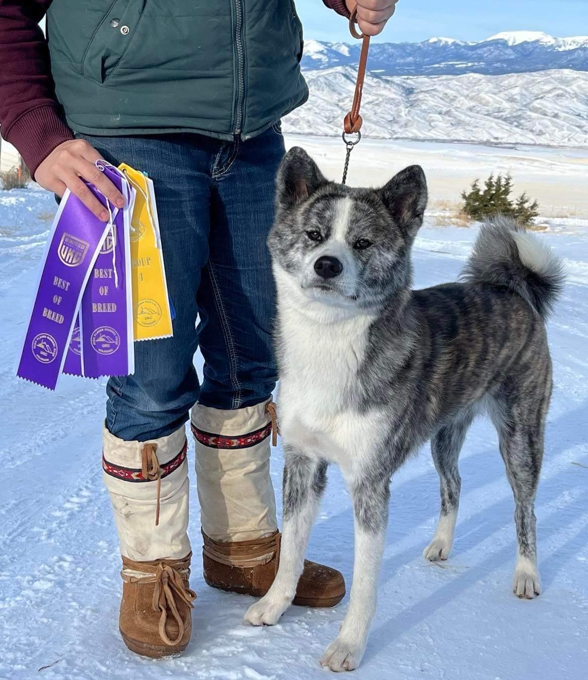 When I was too young to know better, I tirelessly looked for a breeder of Japanese Akitainu, as I had always been drawn to them and had grown up with working stock and guardian dogs, but craved something wilder and bold, less dependent on my direction, but that still maintained loyalty to me as their master. As I found, this was harder than I initially expected. Nobody responded to my inquiries. I instead found unknown to me at the time, a puppy mill, it was disguised well and had many reviews and everything looked good from the outside. So my journey began when I picked up a 12 week old female long-coat American Akita from my local airport, the first one I had seen in person, she was everything Akita and nothing what I expected. She was incredibly challenging but I loved her dearly. Ultimately she had so many behavioral, and health issues due to her intense inbreeding that her life was very short, this left a deep deep wound in my heart, but taught me a lot. It taught me the value of good breeding practices, the importance of health testing, genetics, early socialization, and knowing your lines. I never again rolled my eyes at the prices of dogs that were shown and bred with intention. I saw the value in knowing what you were getting. I gained a tremendous amount of respect for the tireless work that goes into producing well bred dogs, I had no idea really. I met my mentor, who had a litter of the breed that had originally captivated me. Jai. It had been years since my last Akita, and I knew if I was going to try to own a breed like this I had to find the right mentor, and do it correctly. My life had recently changed drastically, my partner and I had moved from the city, back to the country, where a dream had room to spread its wings into a plan. We drove to a much bigger airport and picked up the puppy that would be everything I had been looking for a decade before. She showed me what a well bred dog could be, she showed me what a profound difference good breeding makes. She is the ultimate Akita in the best way, she exemplifies what I want to share with people about the Japanese Akita. The knowledge I have gained from my mentor has been absolutely invaluable. A good mentor is more than a teacher, they become your friend, your family. She introduced me to the competition ring, she taught me how to show, how to recognize good traits and faults in my own dogs. My life has only benefited and continues to make valuable connections in this small world of dogs thanks to my mentor. We are incredibly excited for the future as this journey continues to unfold it has become an international endeavor as we continue to search around the globe for the bloodlines and type that benefit the dogs in our program most.