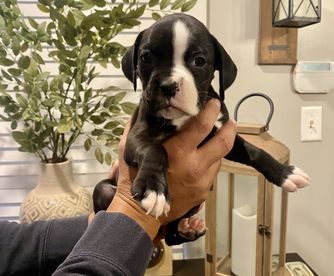 Amma is a female Boxer. Carefully selected as a great representative of her breed, Dana decided to make her part of their program. Dana has passed Good Dog’s screening process, which involved a review of their breeding practices, environment, and the mental and physical health of their dogs.