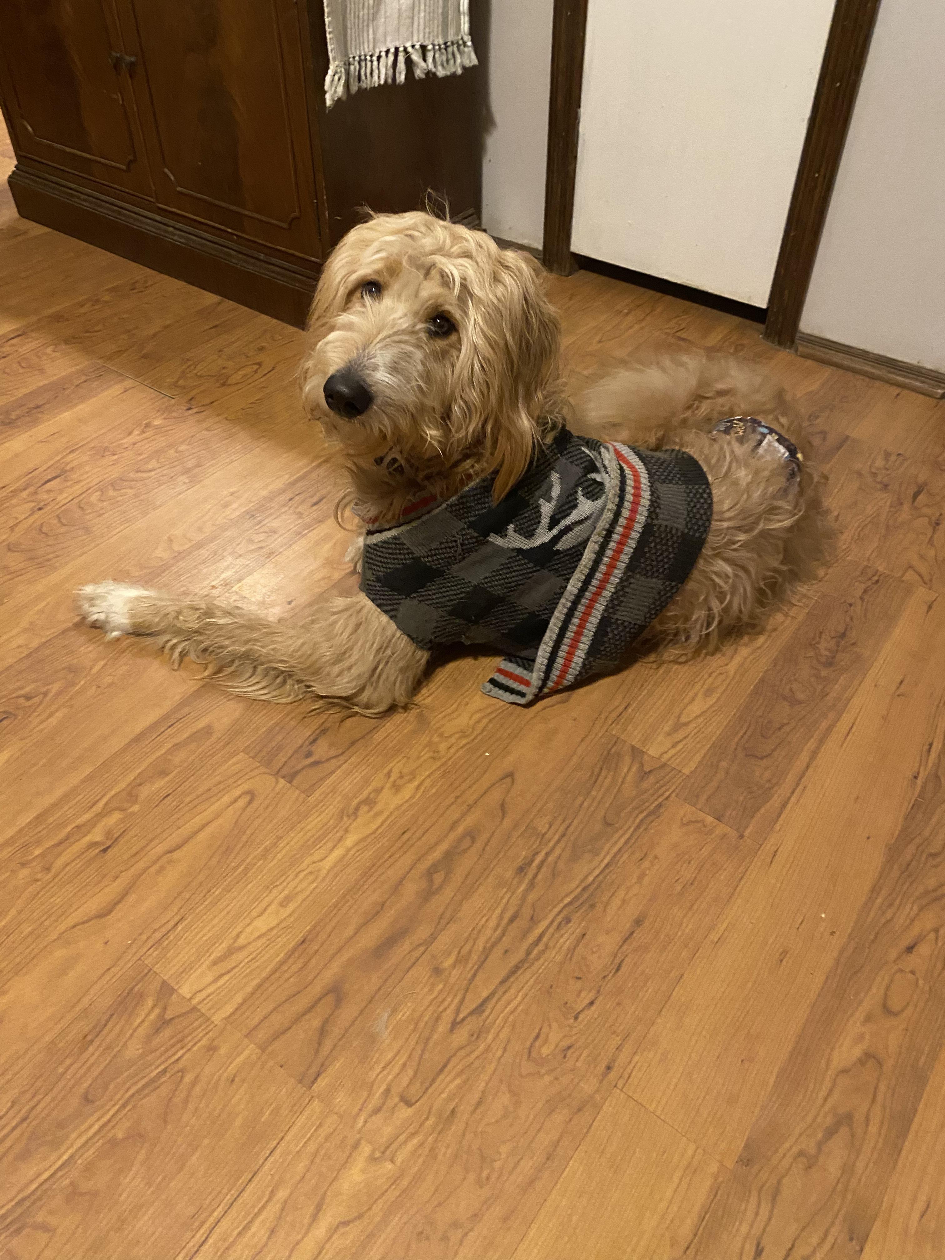 Phoenix is a male Double Doodle. Carefully selected as a great representative of his breed, Karen decided to make him part of their program. Karen has passed Good Dog’s screening process, which involved a review of their breeding practices, environment, and the mental and physical health of their dogs.