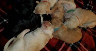 Our puppies include black, brown, cafe au lait, silver, and parti. Colors will vary depending on the parent dogs.