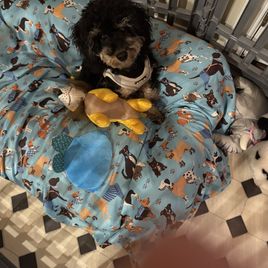 Pascal was obviously raised right. He is 6 months old and has slept through the night in his crate every night since we picked him up. He is sweet and playful. Yomary really loves her dogs and it shows! We love our new fur son! 🥰🐩🥰