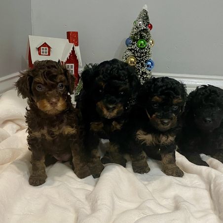 Our puppies include apricot, black, brown, red, and phantom. Colors will vary depending on the parent dogs.