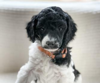 Buffy is a beautiful black standard poodle with some lovely white, phantom-style markings on her bracelets. She is a fun-loving girl whose favorite activities include playing fetch and cuddling on the couch. She is also an awesome show dog and has her UKC Grand Championship. Her health tests include: a clear Embark DNA panel, PennHIP: Right DI: 0.37 Left DI: 0.26, CAER eyes normal, and OFA Basic Cardiac normal. CHIC 176946.
