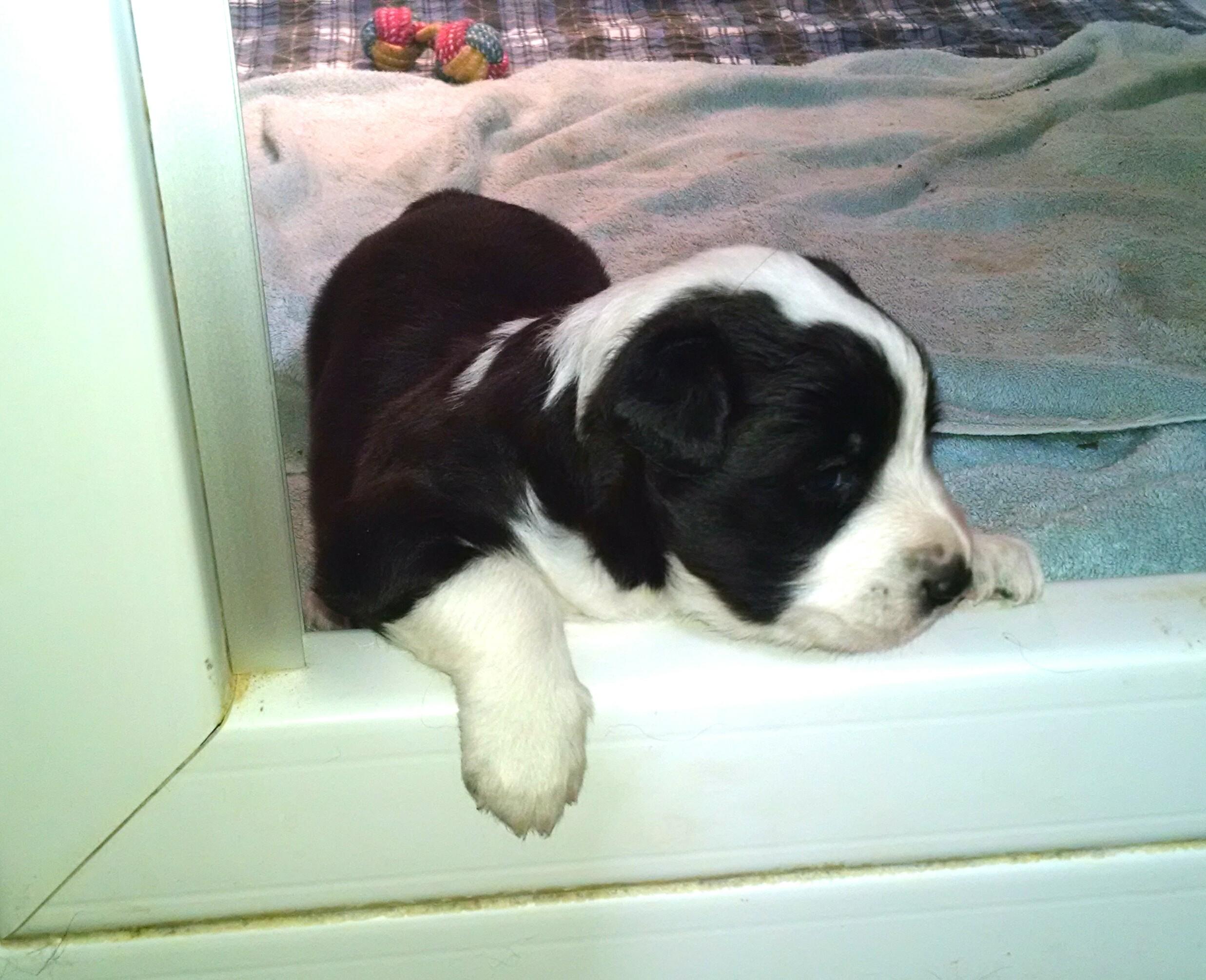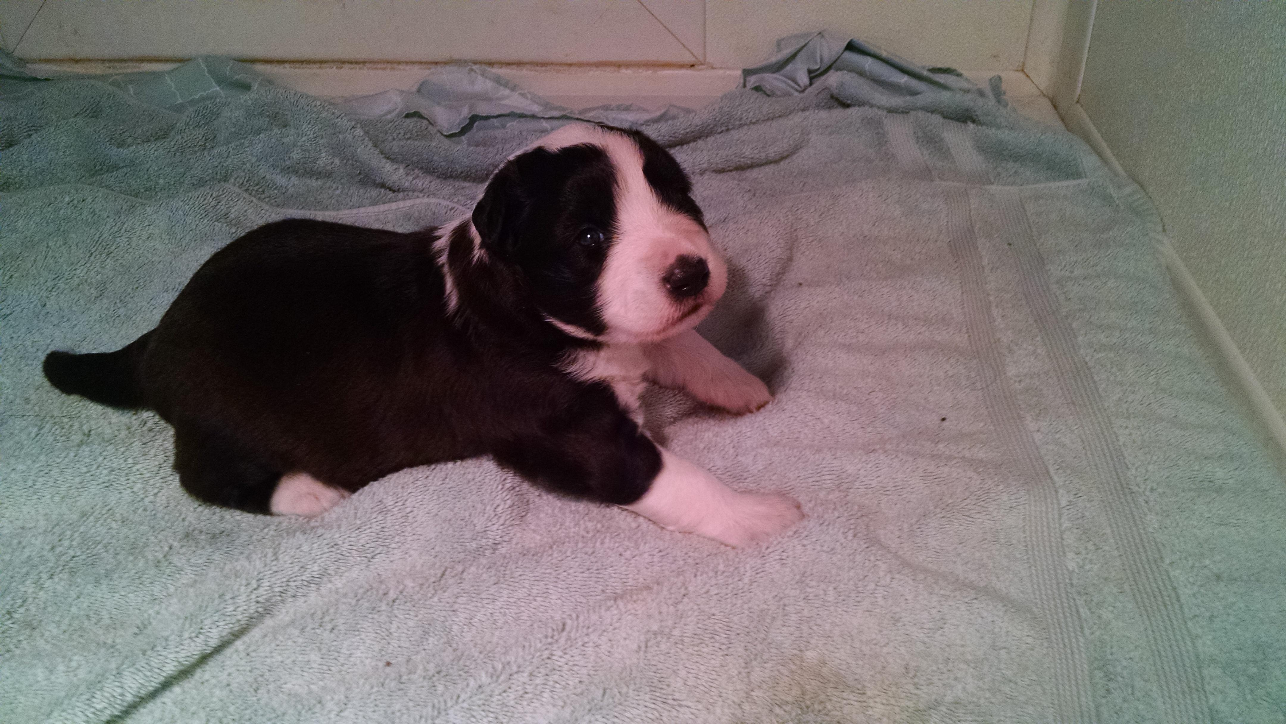 Our puppies include sable and white and black and white. Colors will vary depending on the parent dogs.