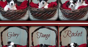 Our puppies include blue tan and white and black tan and white. Colors will vary depending on the parent dogs.
