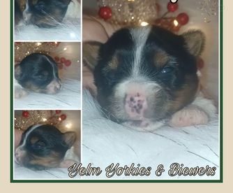 “EMBARK health tested parents, for 250 genetic mutations linked to diseases, including the genetic risk factors most relevant to Biewers and Yorkies 👨‍🔬. Biewer puppies are AKC registered or pedigreed, which you receive with proof of spay/neuter. Puppies are vet checked, given 1st shots, regular de-worming & a 1 year health guarantee. Puppies are trained to a potty pad, eating dry kibble, drinking water & fully weaned before pickup, which will be at about 12 weeks old, or when well developed & socialized. 🐾💗🐾 Puppies come with a big puppy kit! 🐾💗🐾 including: Puppy folder with info & vetting records, potty pads, potty bags, high quality holistic food in reusable lidded container, squeeky toy & blanket with siblings & mom's scent to help with transitioning, chew bone toy, doggy toothbrush, treats, Nuvet vitamins & anything else I feel like adding, all in a reusable handled bag. 🐾💗🐾 Also, new this year 1 month of FREE Trupanian puppy health insurance, which starts instantly through me, not the usual 30 day wait period! I've researched, & this is my favored insurance. I'm happy to offer this for my puppies.🥰 Also included: Microchips for puppies born starting in 2022. Non-refundable if buyer changes mind or returns puppy. Please be sure all parties are on board with getting a puppy: landlords, family, etc. Refundable if I change my mind on sale for any reason.”