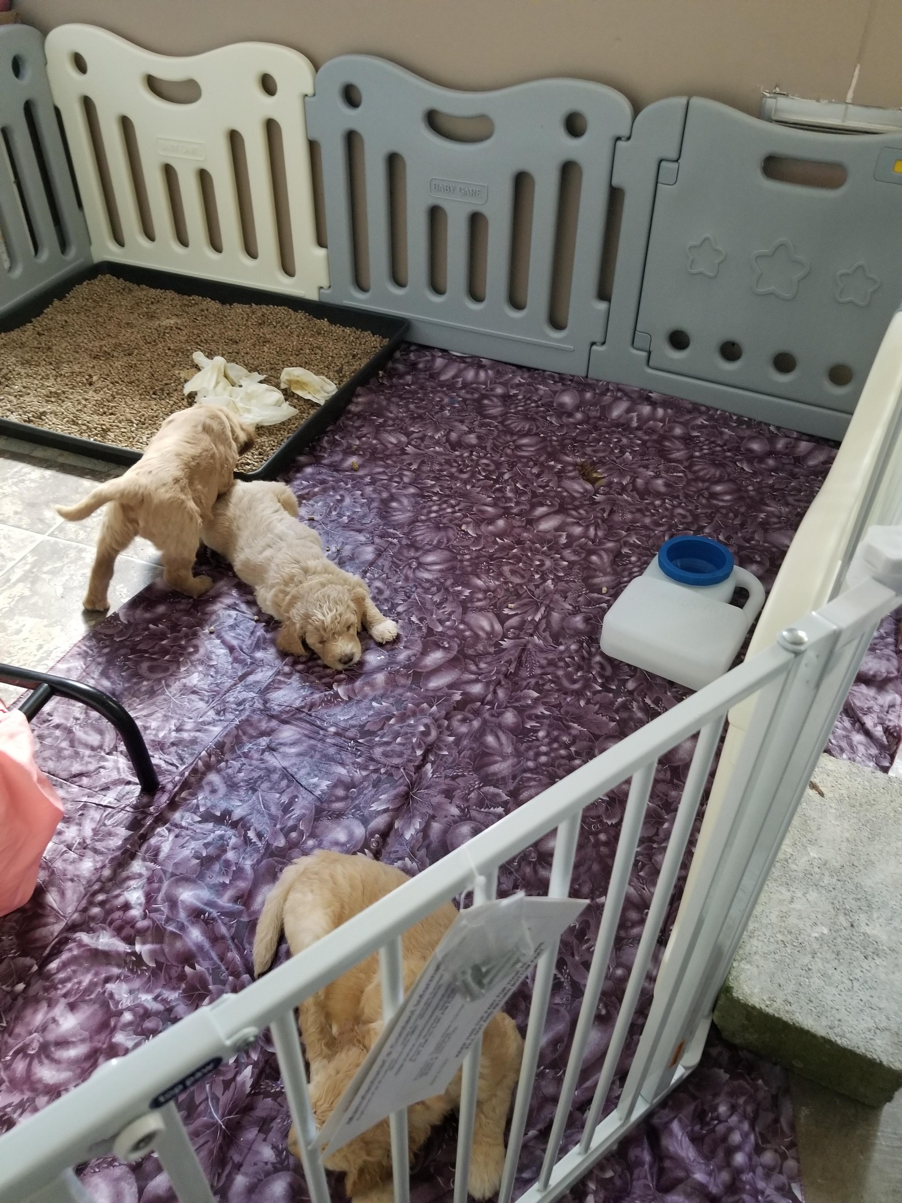 Our puppies are raised by our family in our home. We feed, exercise, socialize, train, and nurture them as a team effort. Using ENS (Early Neurological Stimulation) and use certain Puppy Culture protocols gives them a head start in their socialization. Housetraining begins at three weeks by teaching the puppies to use a litter pan. We have partnered with Bella and Baxter online training and TLC dog food. We offer a two year warranty on the genetic health of your puppy.