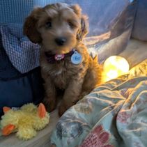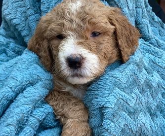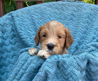 This adorable mini Doodle is waiting for his forever family. Born 12/30/24, he is a perfect mix of playfulness and cuddles. He is completely crate-trained and doing well on his house-training. He is microchipped and comes with 30 days free health insurance. Reach out with any questions. A down payment will hold this little guy for you!